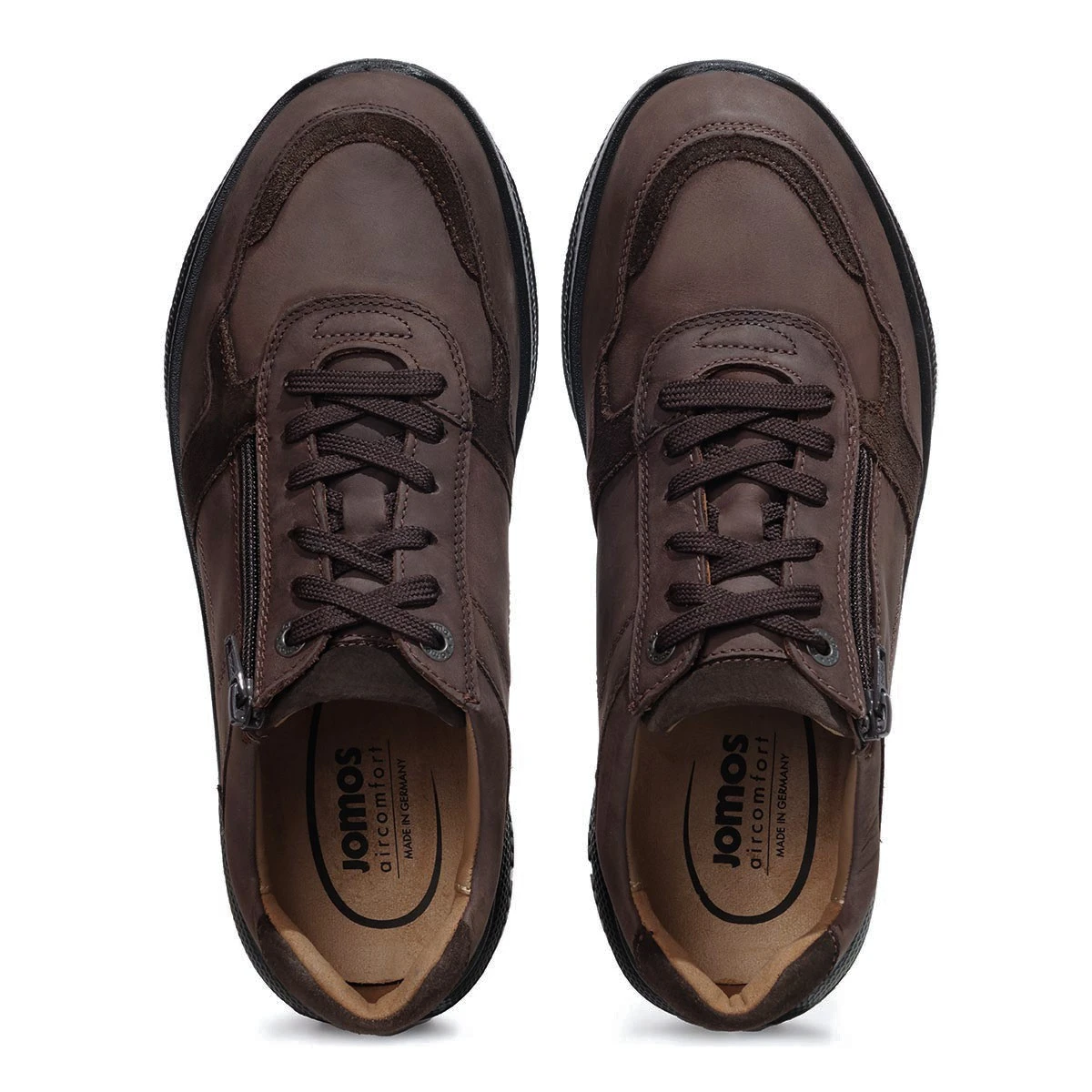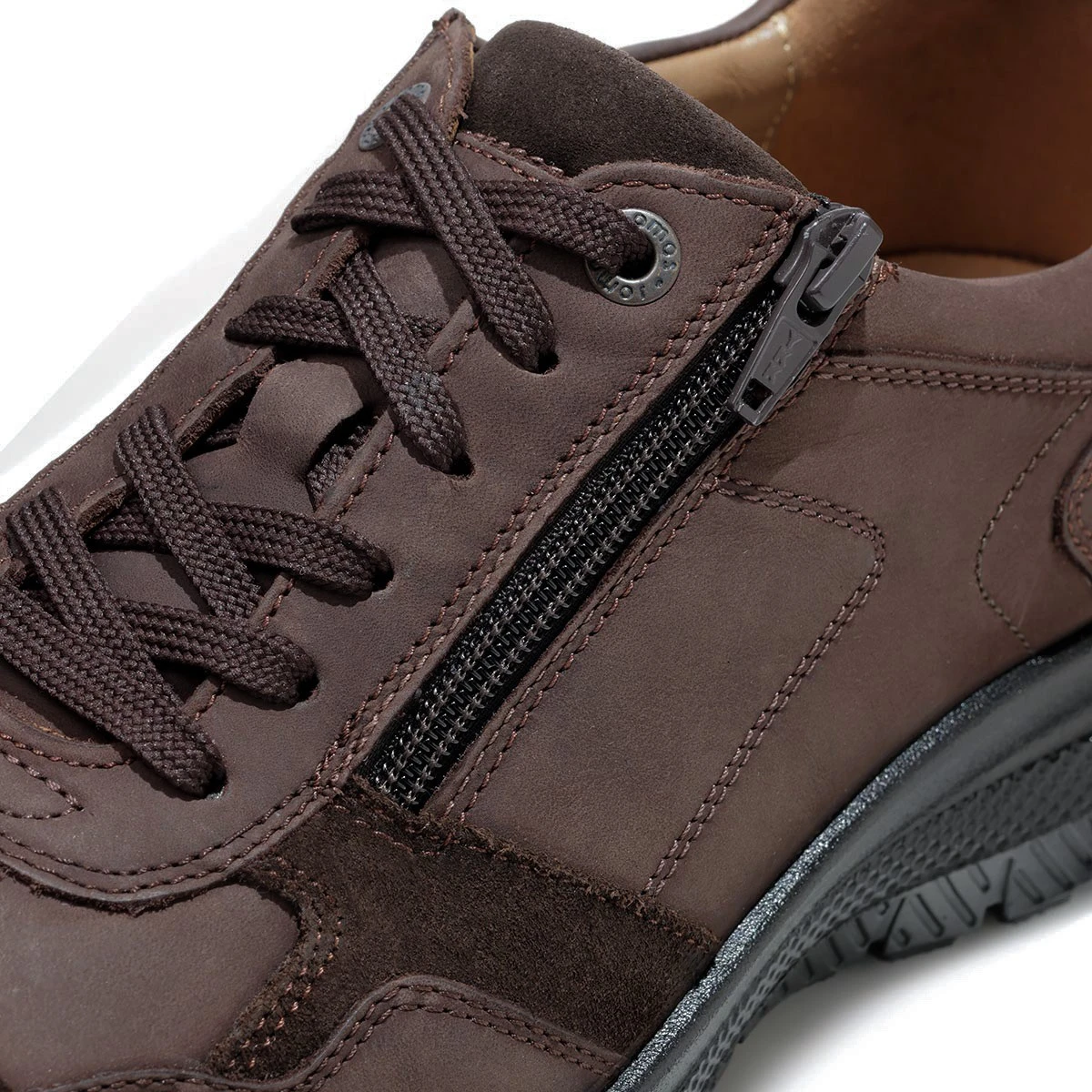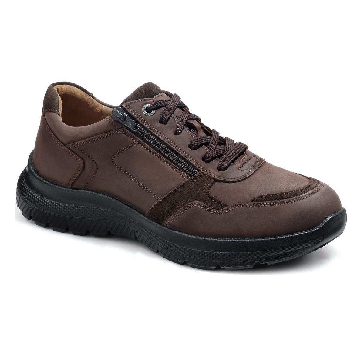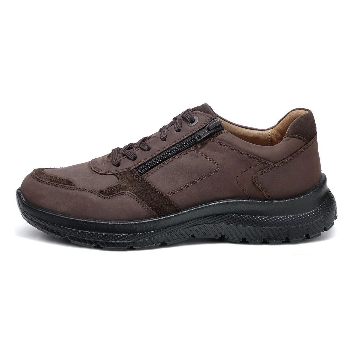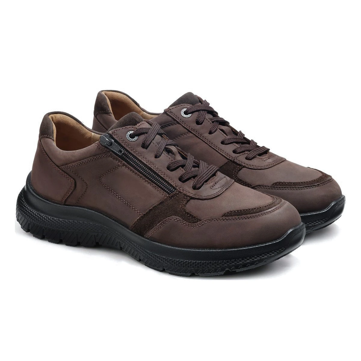 Мужские полуботинки на высокой подошве выполнены из мягкого натурального нубука шоколадного оттенка. Подкладка модели – натуральная кожа, которая обеспечивает комфортный микроклимат в обуви даже при интенсивном ношении.