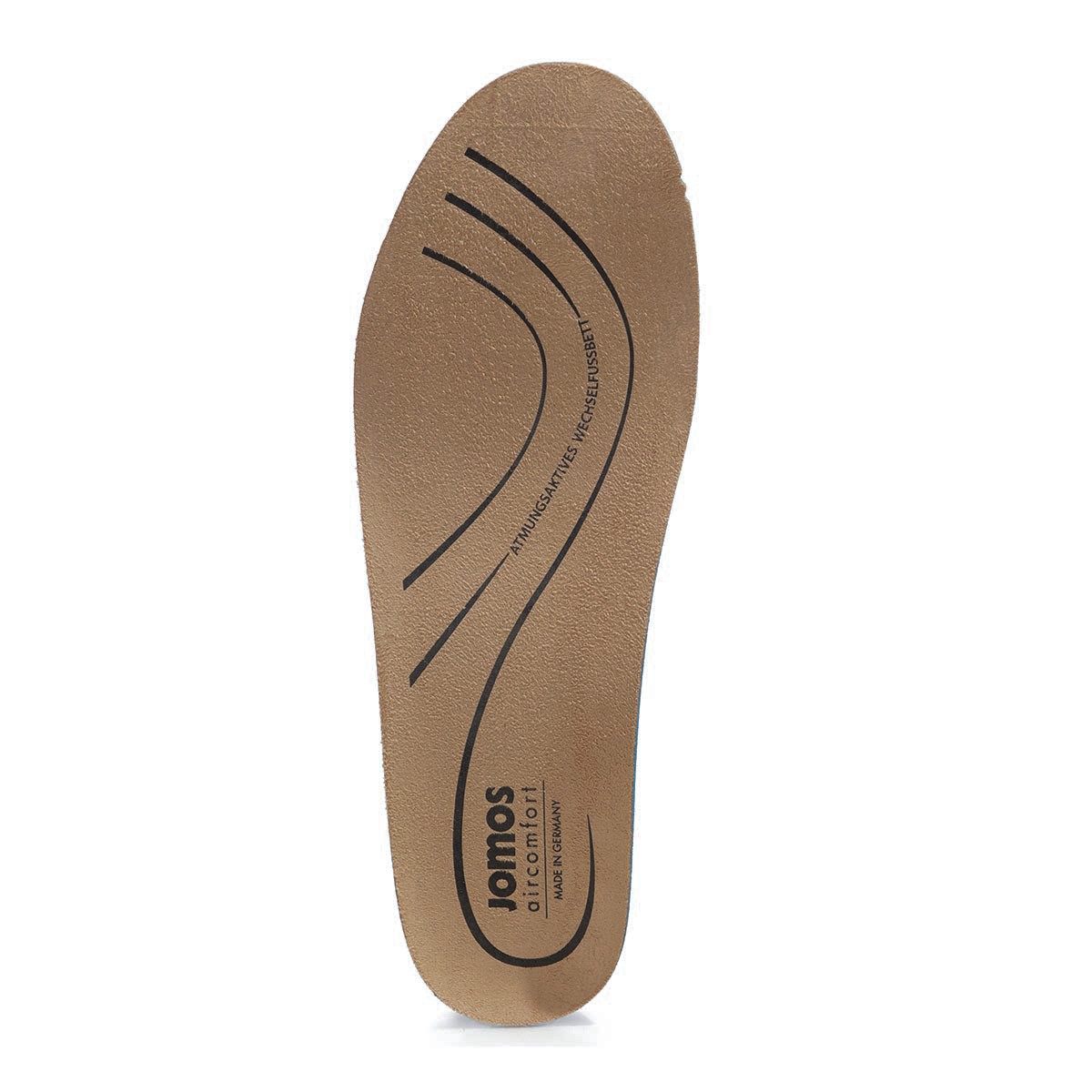 Съемная дышащая стелька AirBlueCom на вспененной основе, запоминающей форму, отличается бархатистым покрытием “под замшу”. Она обладает отличной воздухопроницаемостью и прекрасно адаптируется по стопе, оказывая мягкую поддержку сводам. Покрытие стельки – дышащий текстиль.