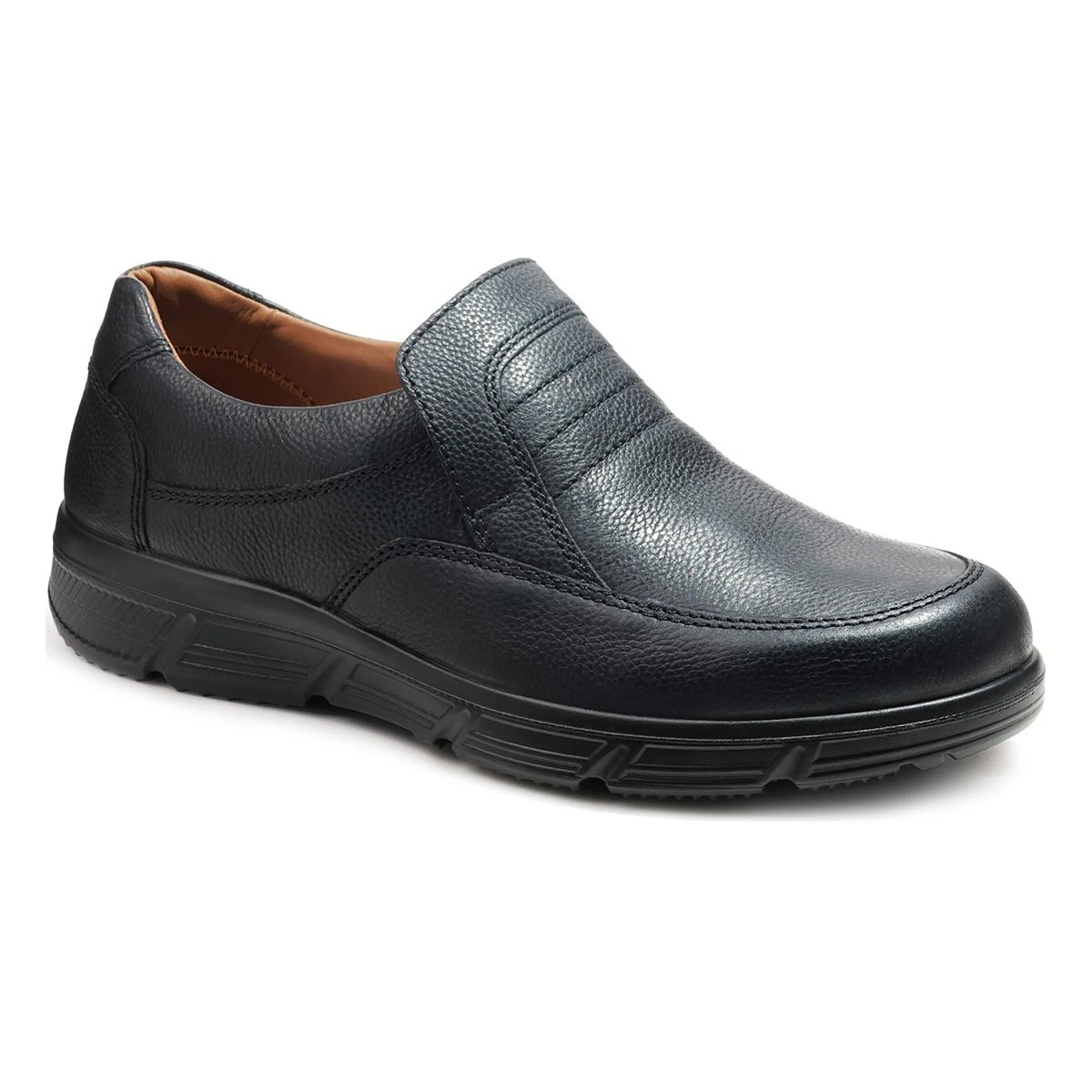 Повседневные полуботинки в широкой полноте из натуральной, мягкой и прочной зернистой кожи привлекают внимание своей практичностью. Подкладка модели выполнена из натуральной кожи, которая обеспечивает комфортный микроклимат при ношении. Модель без застежек фиксируется при помощи вставок из эластичной ленты (резинки) в области союзки. Полуботинки в широкой полноте К подходят на широкую стопу и высокий подъем.