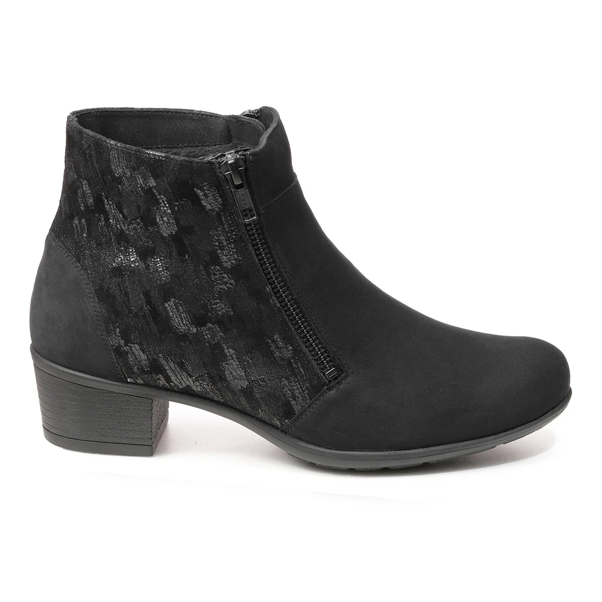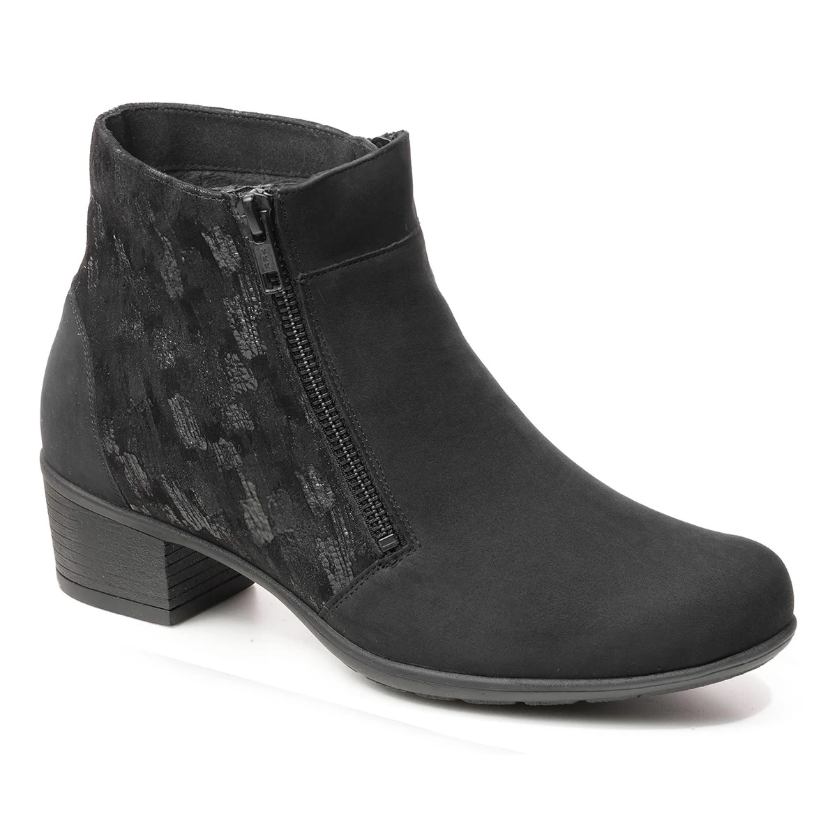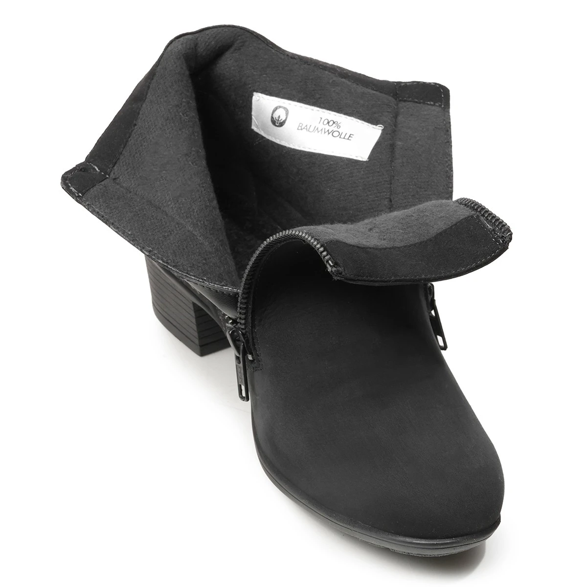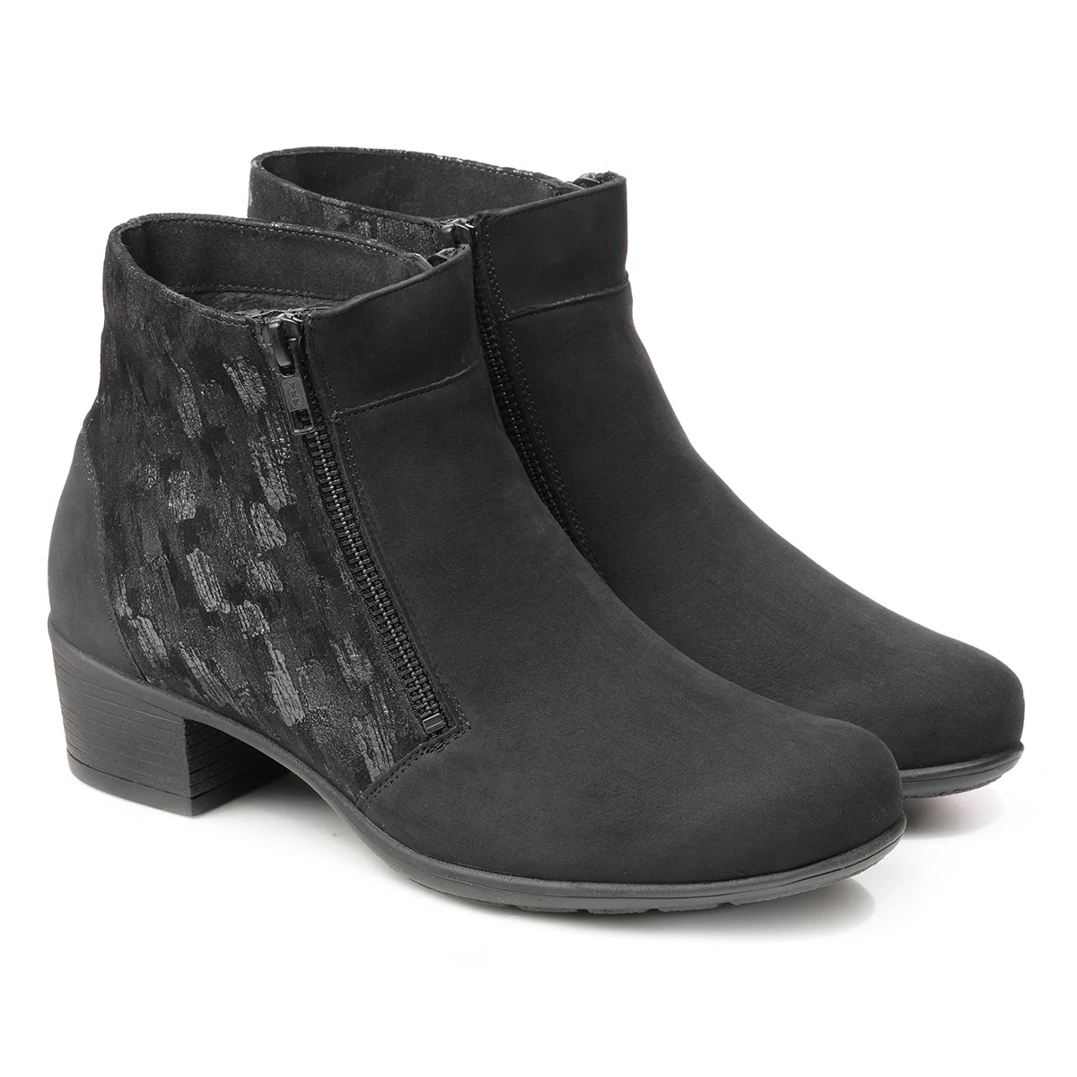Элегантные демисезонные ботильоны выполнены из натурального мягкого нубука на выделенном каблуке, подходят на широкую стопу и высокий подъем. Молния сбоку позволяет легко надевать и снимать обувь.