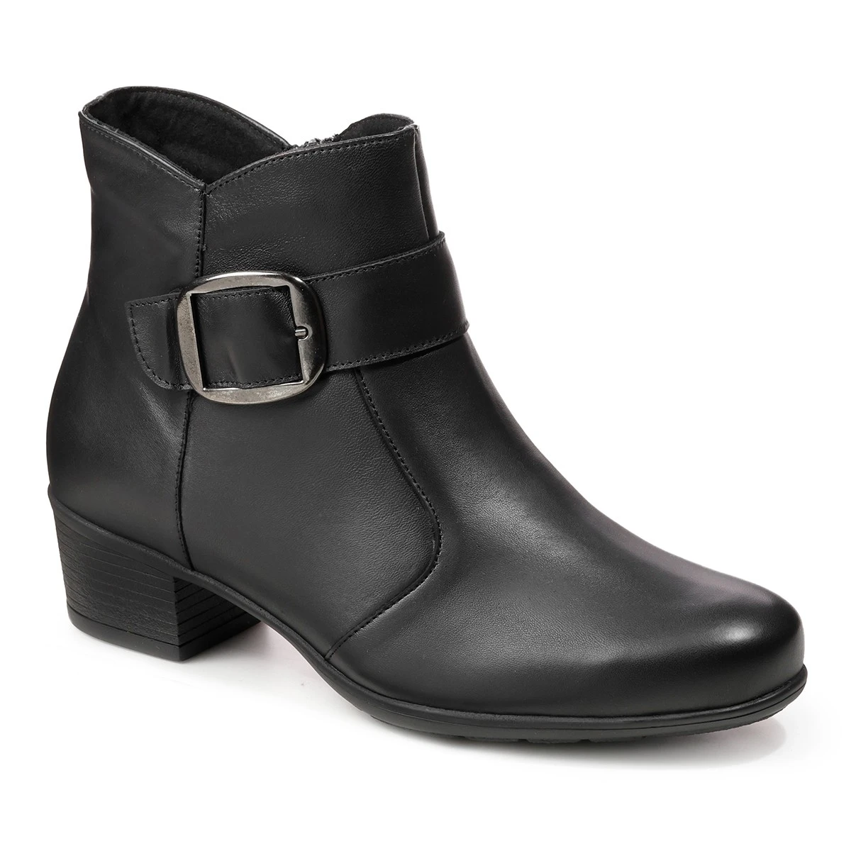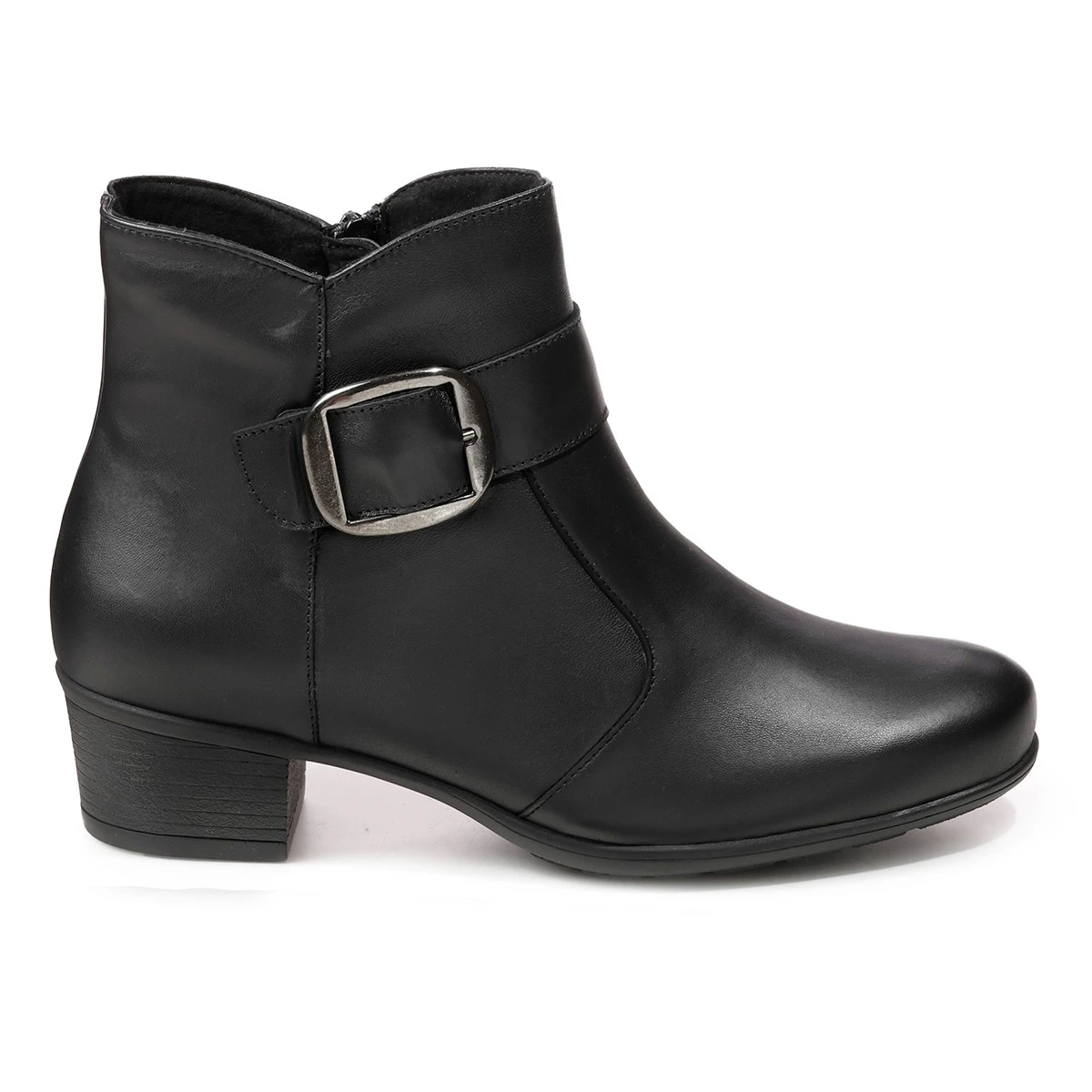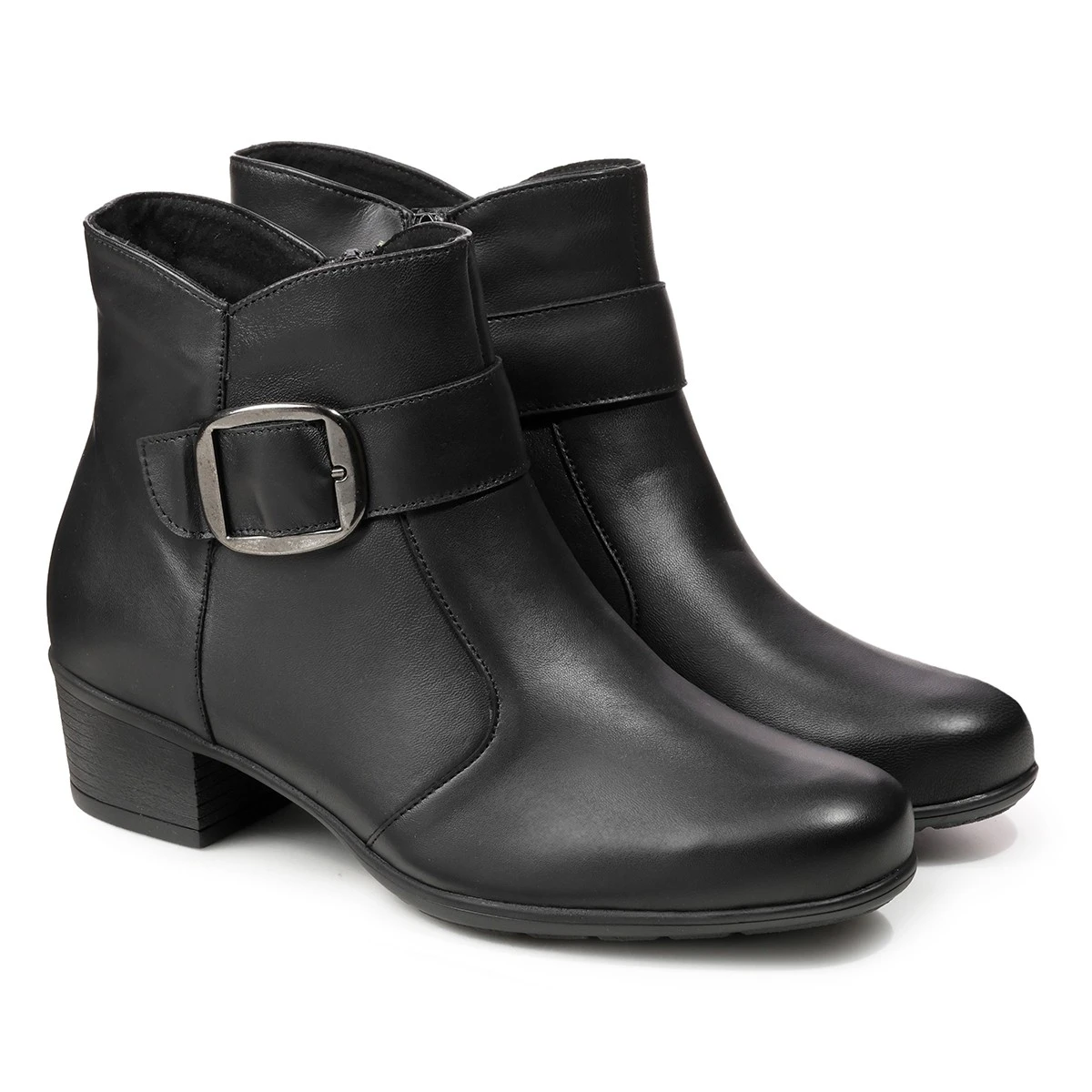 Элегантные демисезонные ботильоны выполнены из натуральной гладкой кожи на выделенном каблуке, подходят на широкую стопу и высокий подъем. Молния сбоку позволяет легко надевать и снимать обувь. Крупная декоративная пряжка украшает ремешок в области подъема.