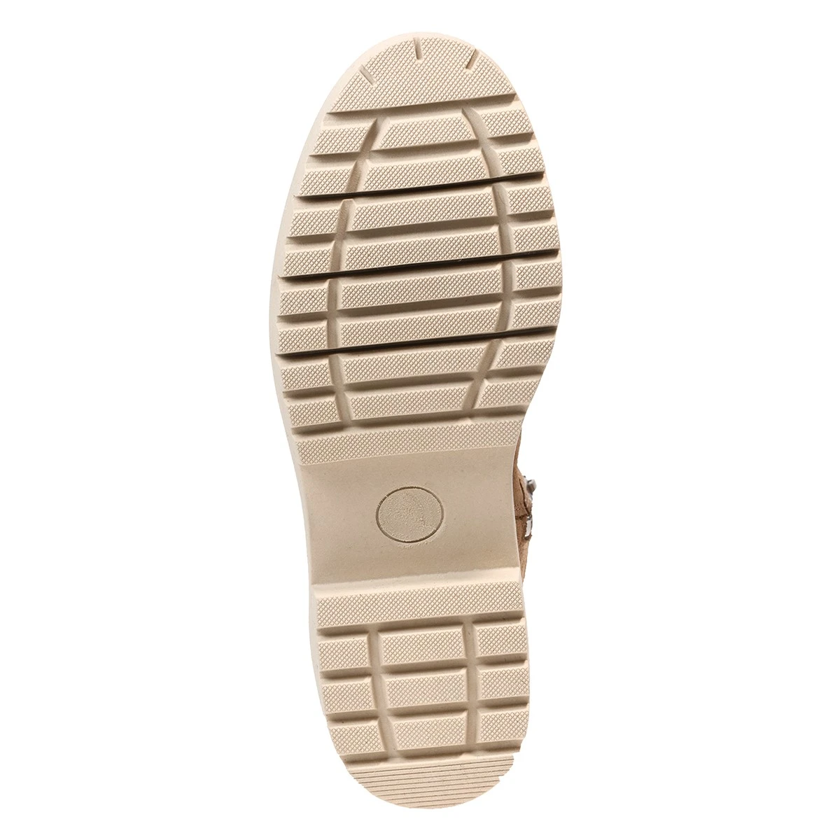 Высокие демисезонные ботинки немецкого бренда Frankenschuhe на шнуровке из бежевой замши с подошвой в тон - идеальный компаньон в образе нюдовый тотал-лук.  Гибкая и прочная подошва из полиуретана обладает исключительной амортизацией и уменьшает ударную нагрузку на суставы ног и позвоночник, поэтому ноги будут меньше уставать после долгих прогулок.