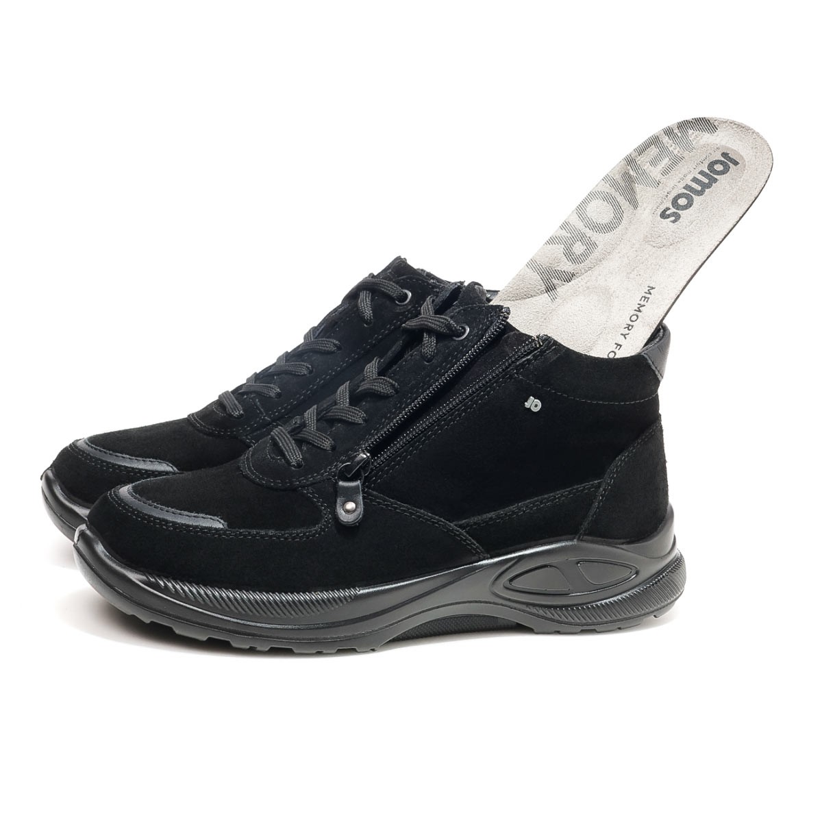 Легкая полиуретановая подошва c технологией Jomotion поглощает удары при ходьбе, стабилизирует стопу и поддерживает оптимальный перекат, снимая нагрузку с суставов ног и позвоночника при ходьбе. А противоскользящий рельеф прочной, износостойкой подошвы обеспечивает превосходное сцепление со скользкой поверхностью.
