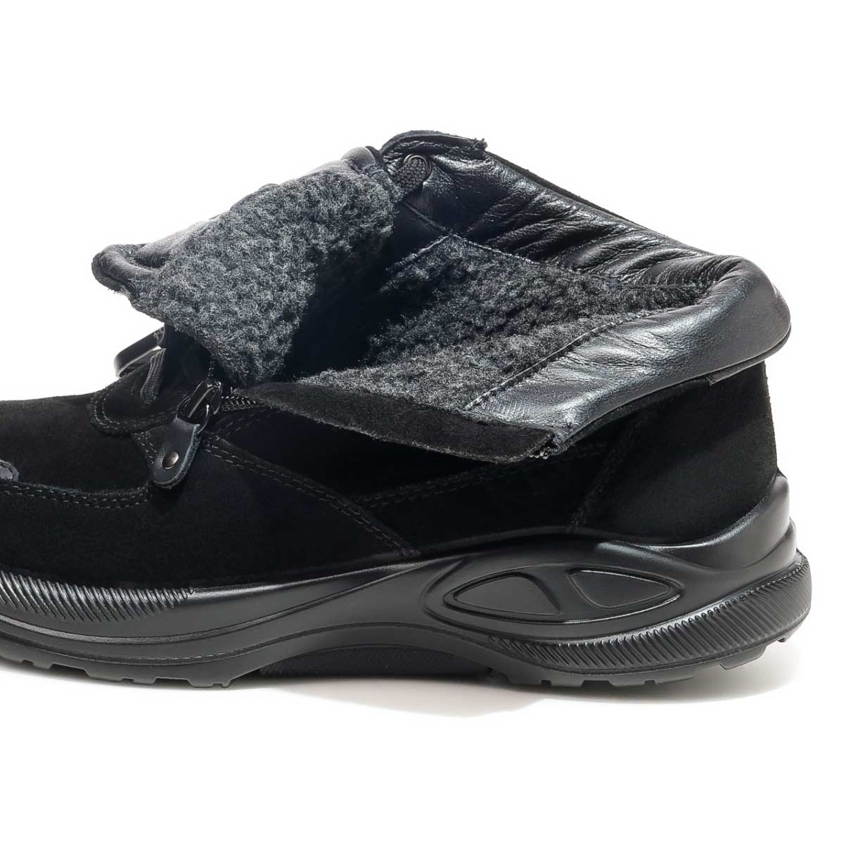 Зимние ботинки в широкой полноте выполнены из мягкой натуральной замши с деталями из гладкой кожи. Модель утеплена подкладкой из натуральной шерсти. Особенно мягкая съемная стелька MemoryCom с эффектом памяти адаптируется к форме стопы, обеспечивая поддержку сводам. После каждого шага стелька возвращает свою первоначальную форму. А ее мягкая текстильная поверхность обладает отличной воздухопроницаемостью, которая помогает поддерживать комфортный микроклимат в обуви.