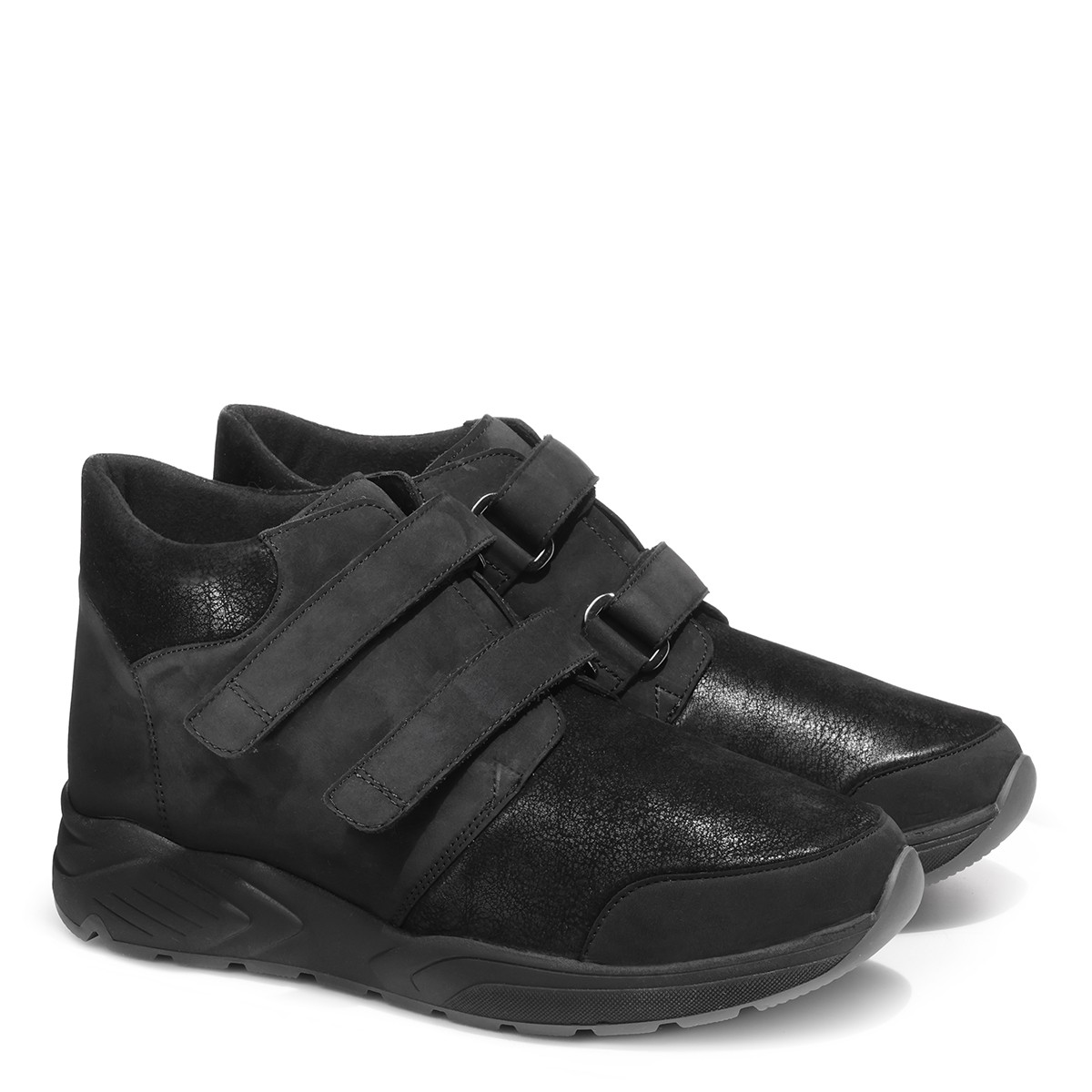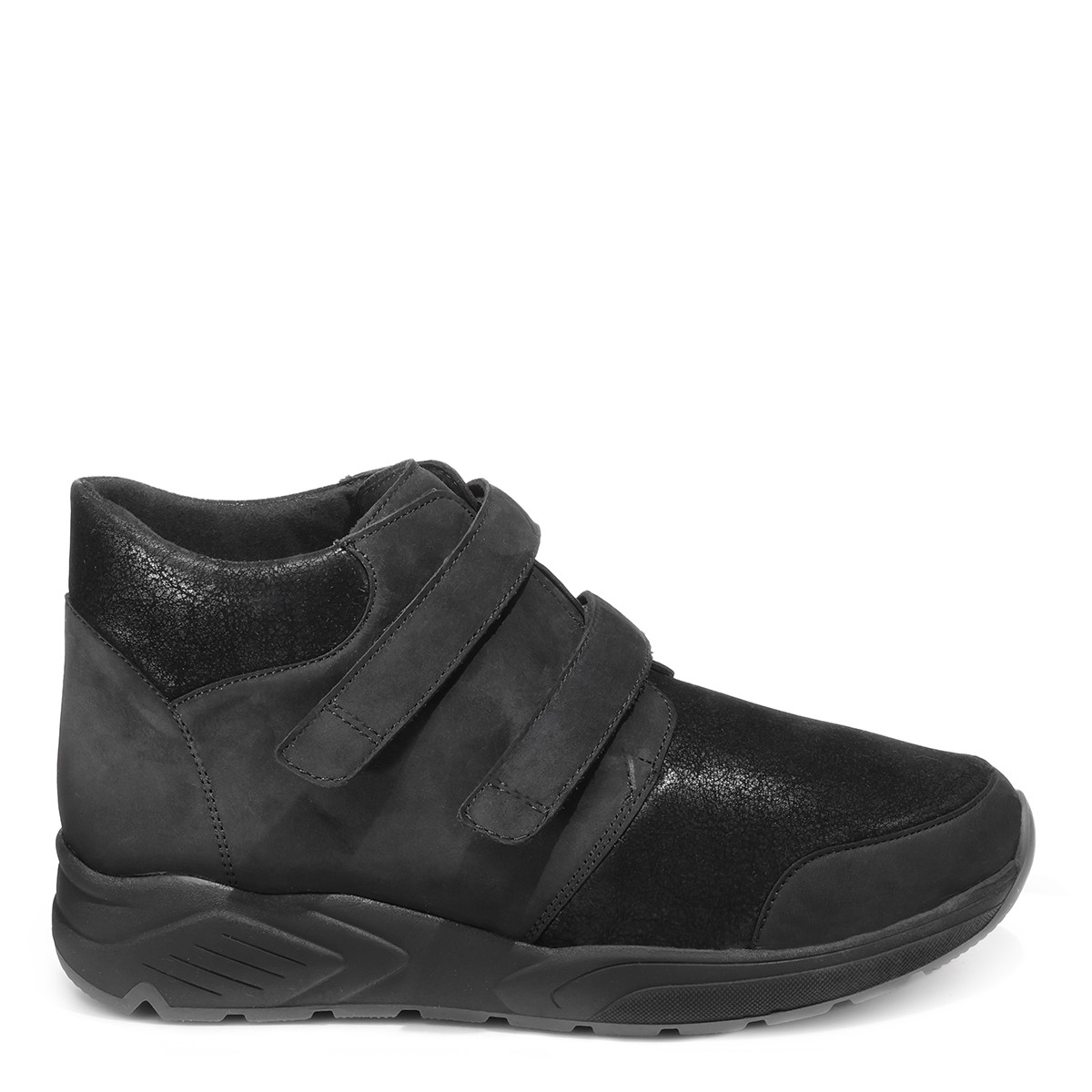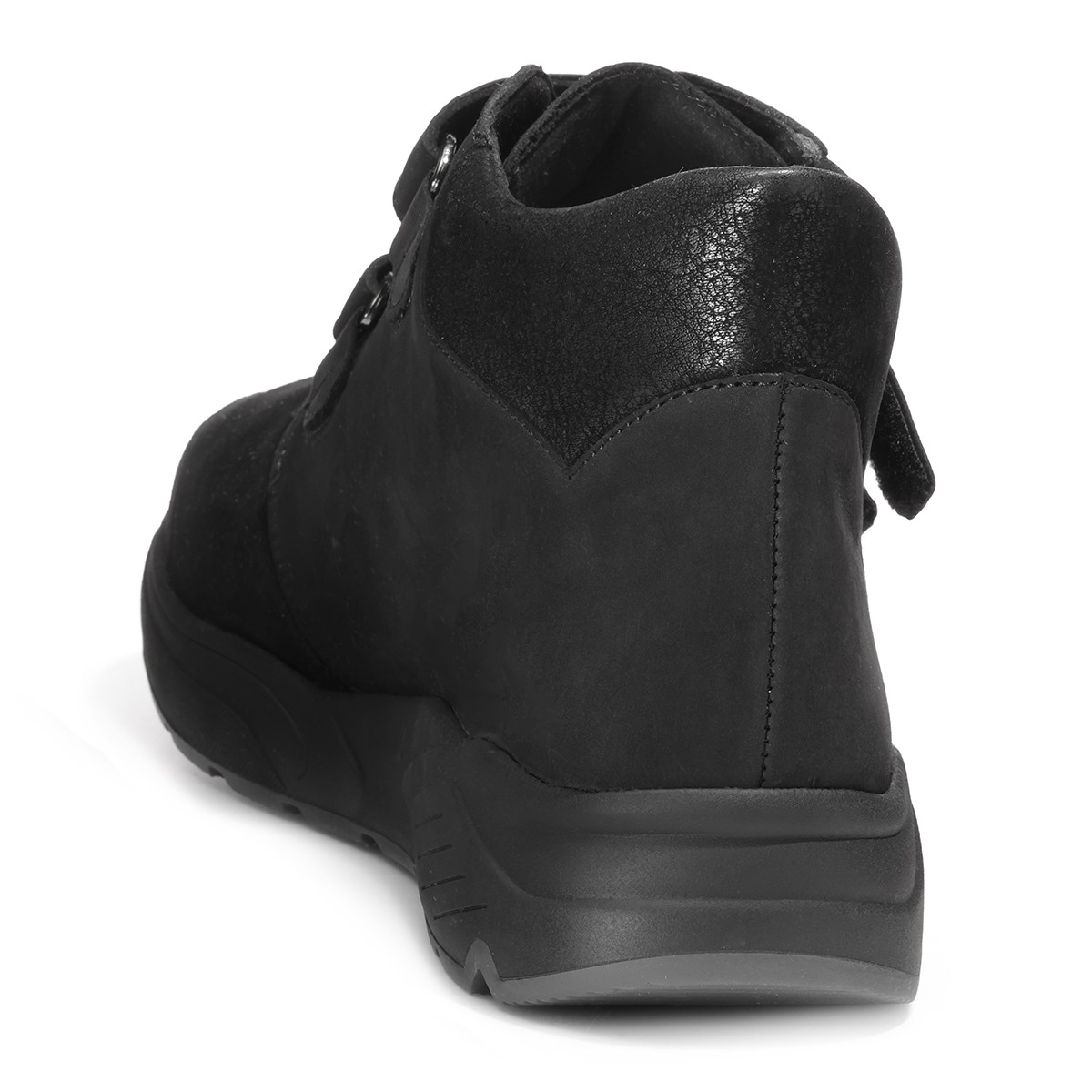 Удобные демисезонные ботинки в очень широкой полноте М подходят на широкие стопы с высоким подъемом, а также при выраженной отечности стоп. Обувь выполнена из натурального нубука с эластичной вставкой из материала Nappaflex в области союзки, которая снимает давление с деформированных участков стопы. Два ремешка на застежках-липучках позволяют быстро зафиксировать модель по ноге.