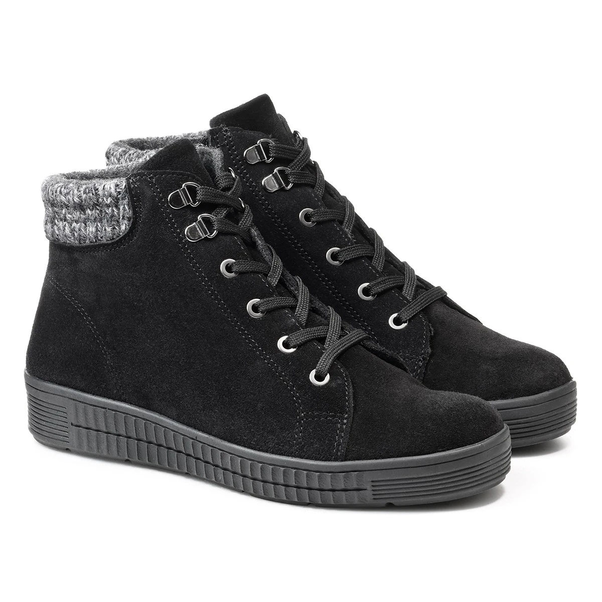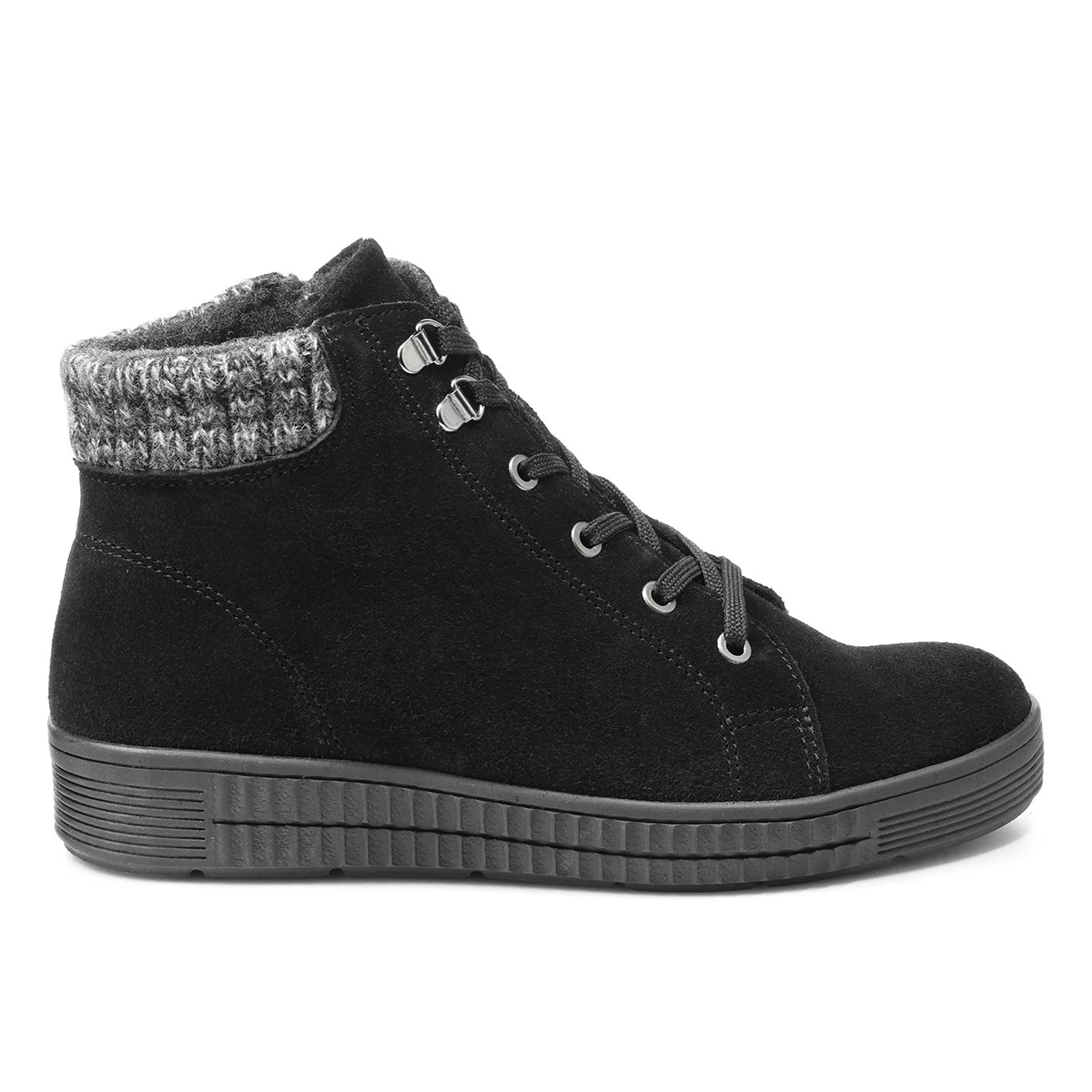Благодаря подкладке из пушистой байки и вязаной вставке по верхнему краю в обуви уютно и тепло.