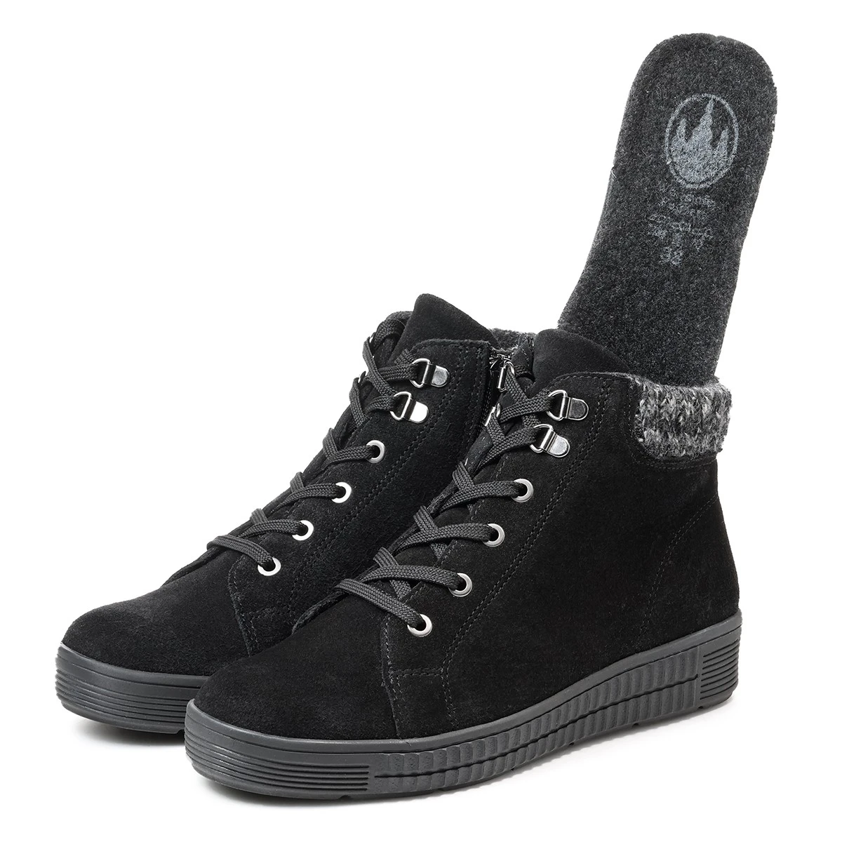- двойная система фиксации: шнурки и молния - облегчает регулировку облегания по ноге;
