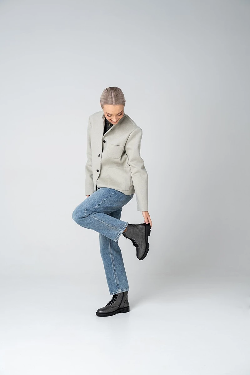 Высокие ботинки в оттенке серый металлик станут универсальной базой для множества осенних образов. С платьем и джинсами, с юбками и брюками – берцы наилучшим образом закончат образ, добавив динамичности и стильности.