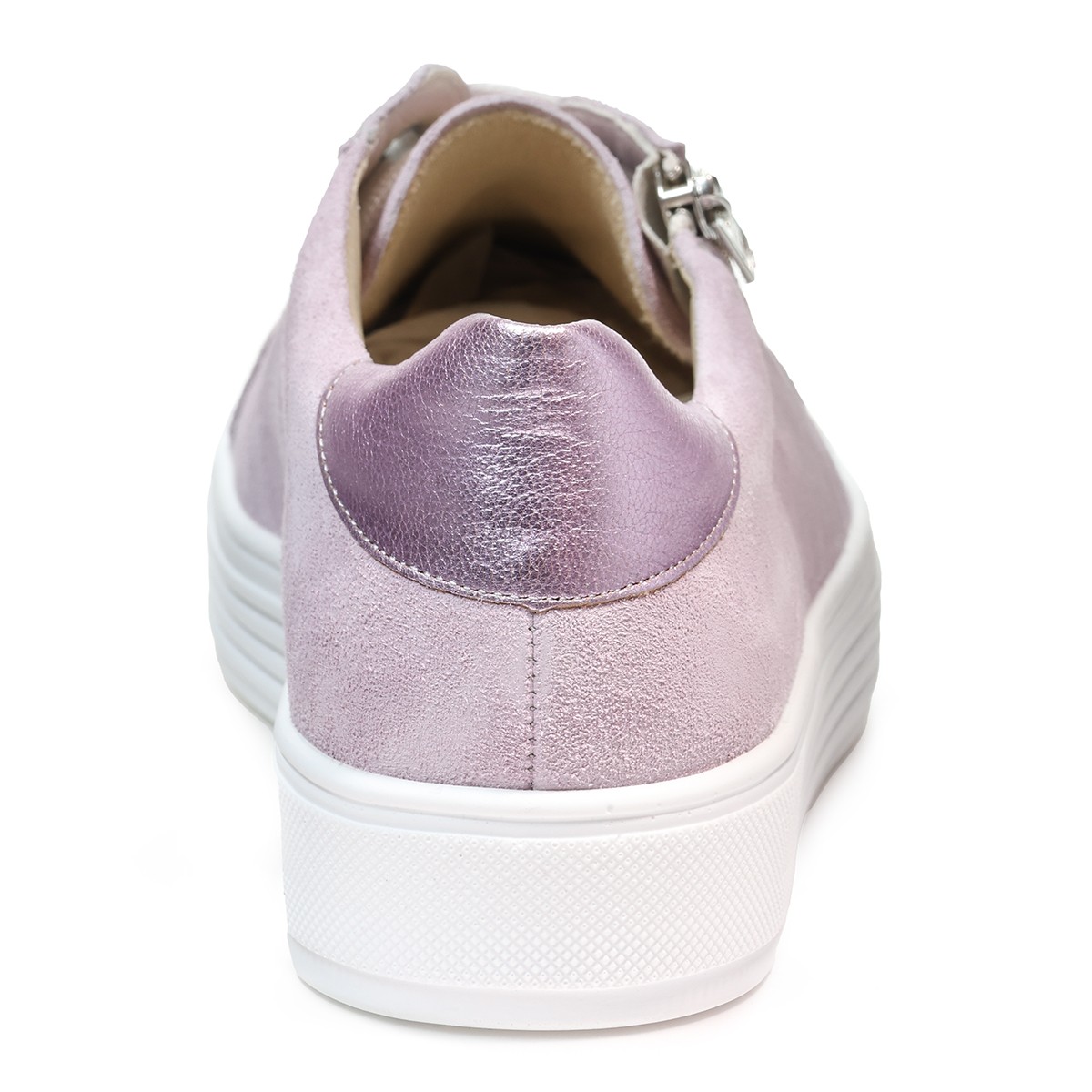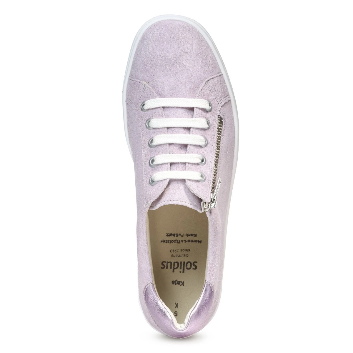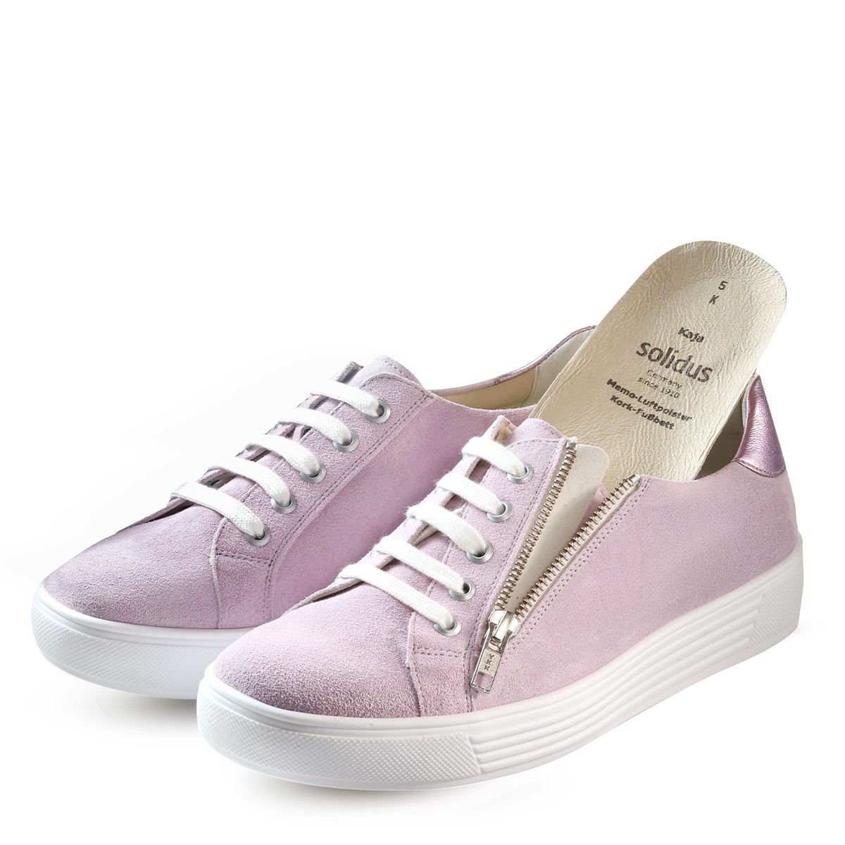 Женские кеды Solidus нежного оттенка розовой лаванды с большой полнотой невероятно удобные, мягкие и отлично сидят на ноге. Снаружи кажущаяся плоской подошва кед внутри конструкции имеет скрытый каблук высотой 1,5 см, который обеспечивает необходимый физиологический перепад между положением пальцев и пятки. Таким образом обувь поддерживает здоровье стопы. Это удобная альтернатива традиционной обуви на весну, лето и раннюю осень.