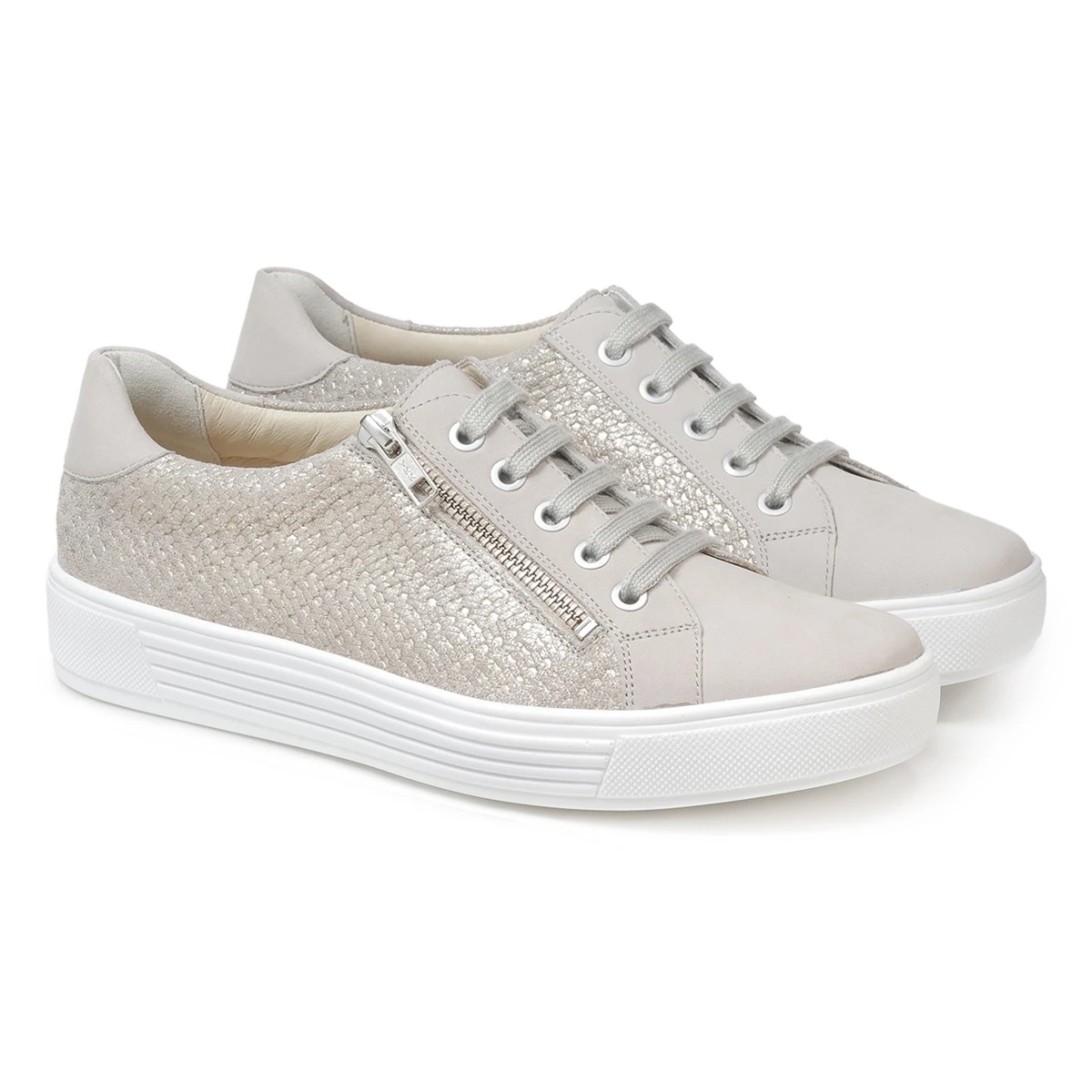 Мягкие и удобные кеды с имитацией тиснения сделают ваш образ более женственным. Модель выполнена из натуральной кожи и нубука - материалы способствуют хорошей воздухопроницаемости, поэтому в обуви создается оптимальный микроклимат в течение всего дня.
