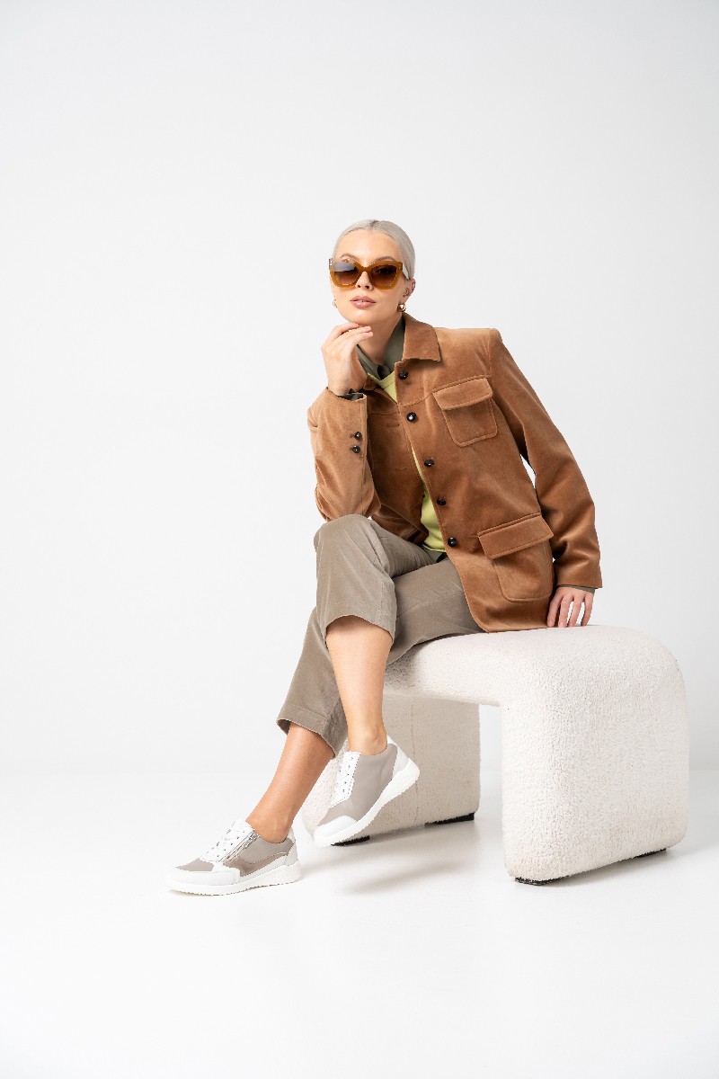 Съёмная пробковая стелька со вставками-амортизаторами поддерживает своды стопы, не давая ногам уставать. Стелька покрыта антибактериальным, моющимся материалом Fashmo.