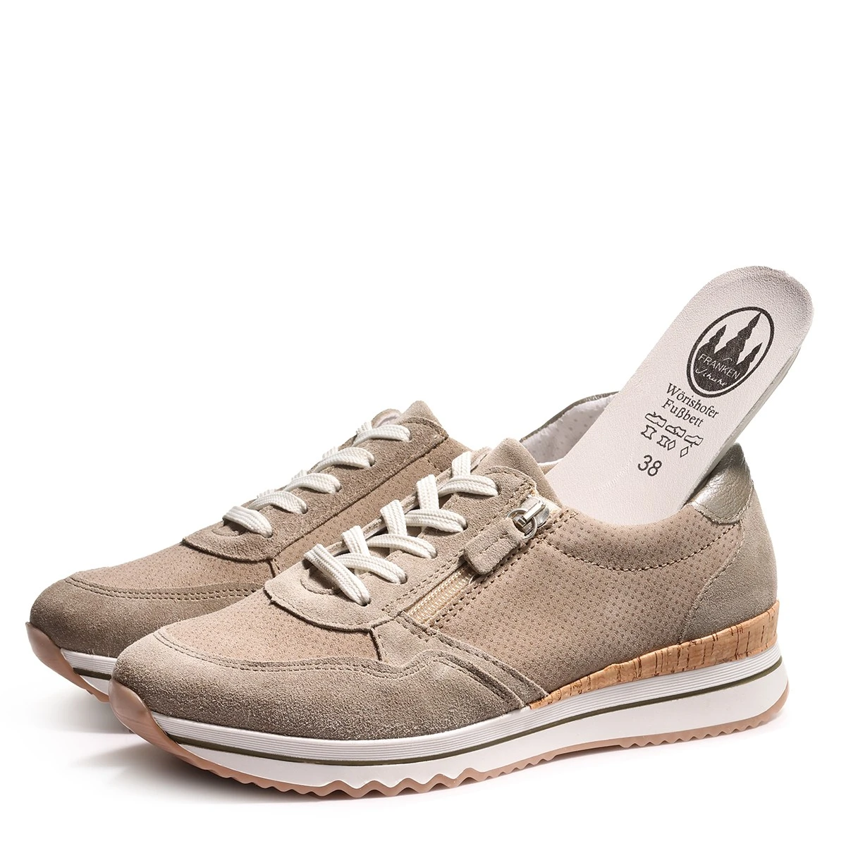 Женские кроссовки повышенной комфортности цвета хаки Brenta от немецкого бренда Frankenschuhe в увеличенной полноте H - стильное решение обуви на лето в стиле сафари.