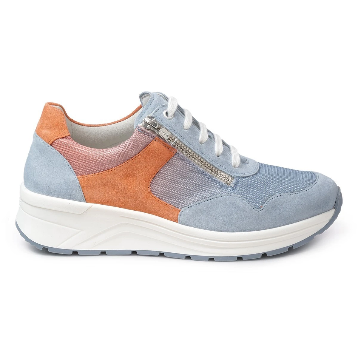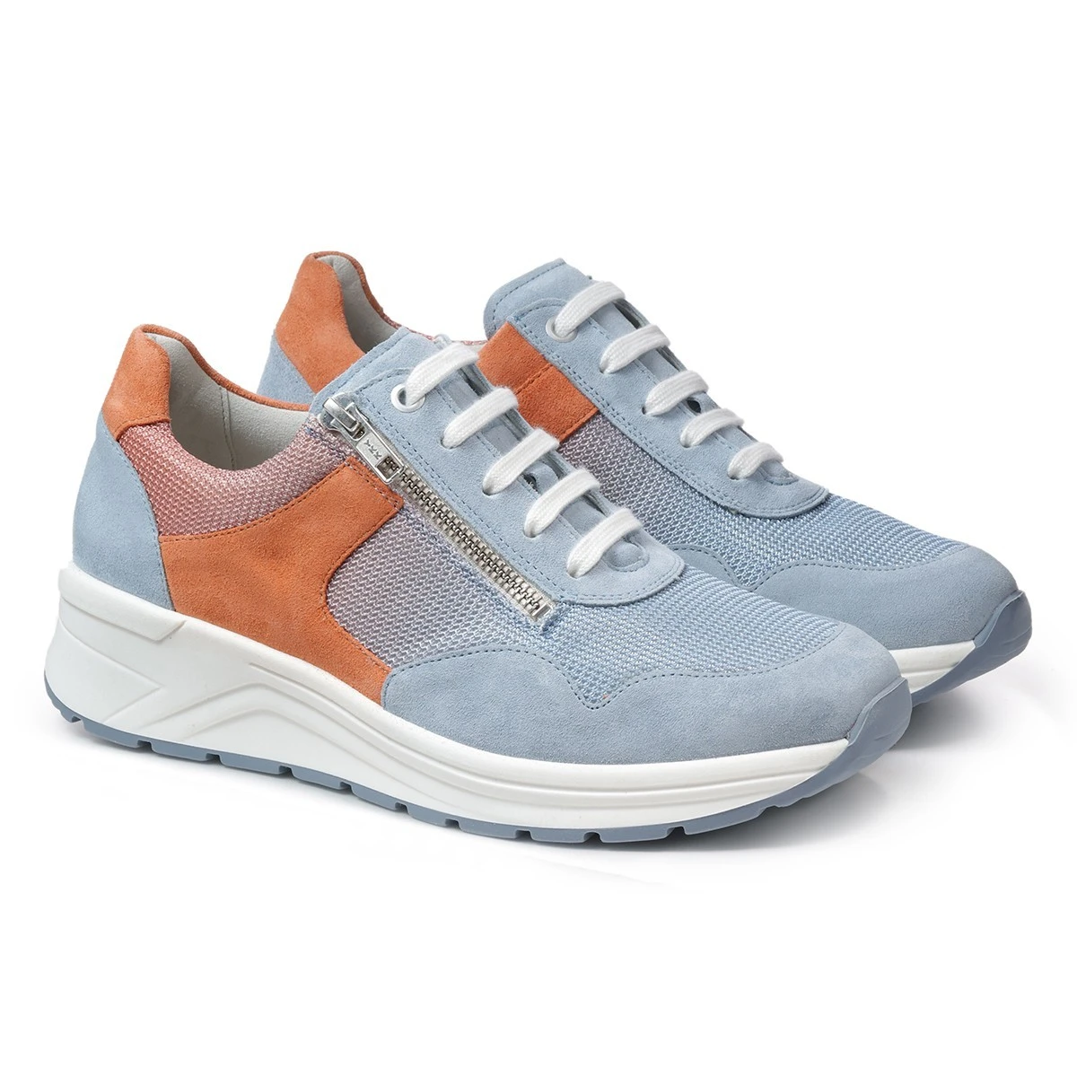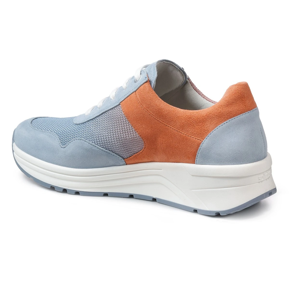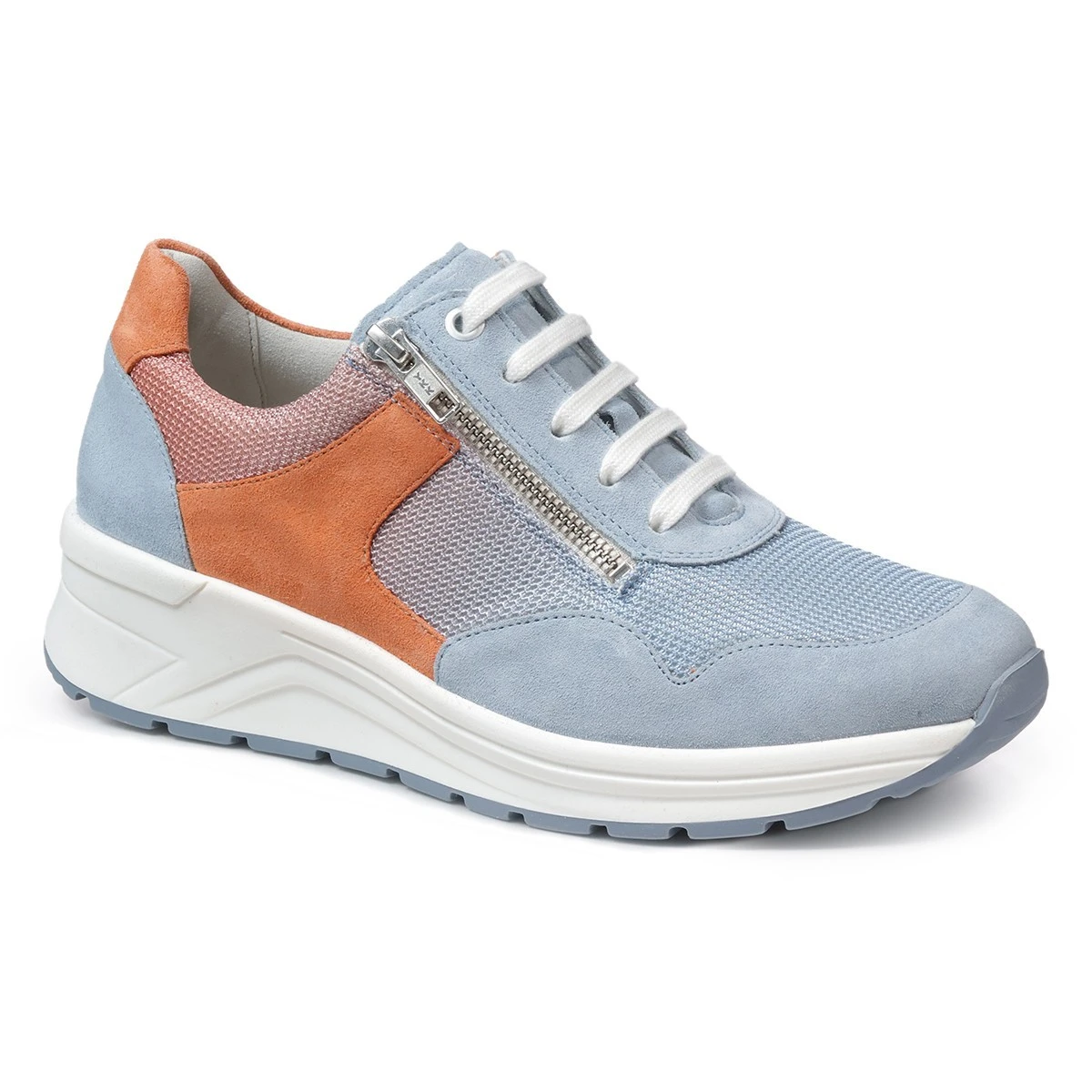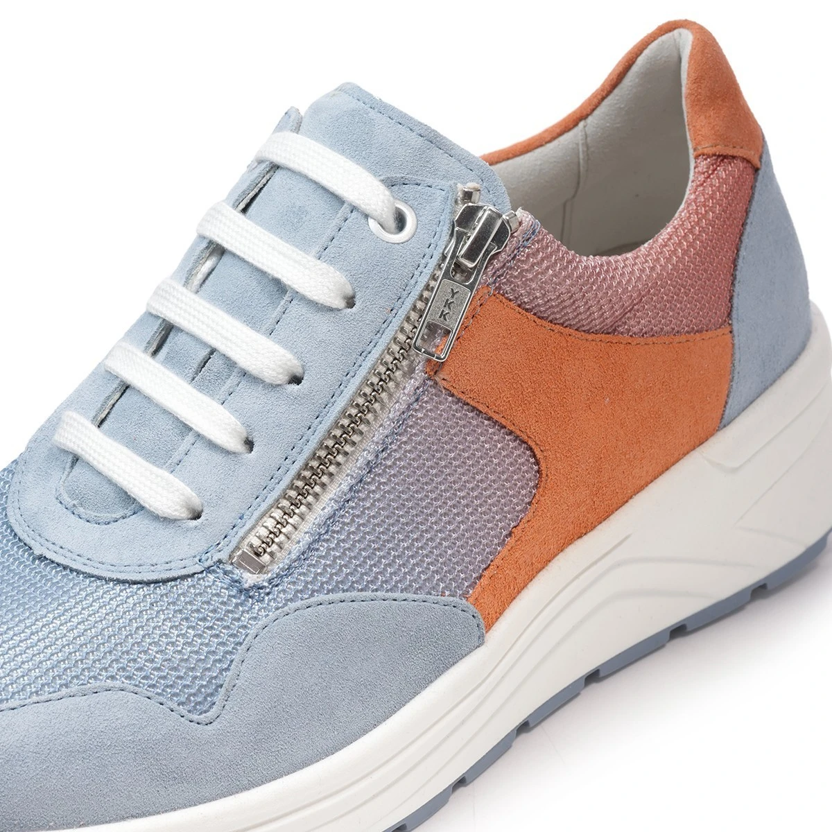 Модная сезонная новинка в круизном стиле - яркие кроссовки с цветным градиентом из мягких материалов на высокой подошве Karma в широкой полноте. Изумительное сочетание - плавный переход голубого в приглушенный оранжевый воплощает красоту коралловых рифов и заката над морем. В то же время придает модели динамичный спортивный вид.
