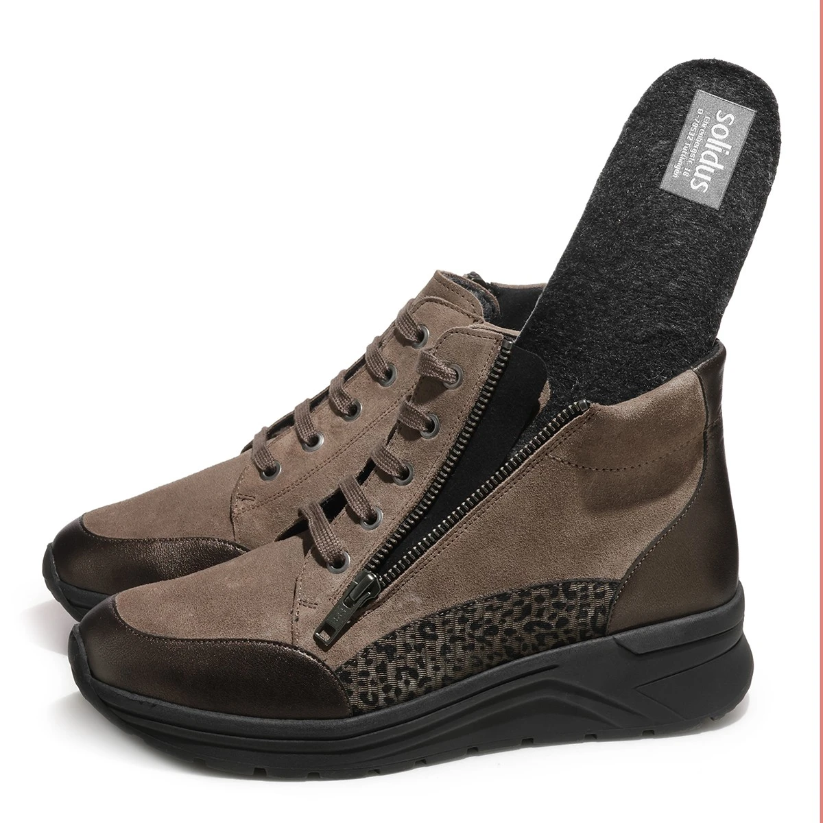 Бренд Solidus уже более 100 лет разрабатывает и производит высококачественную обувь в тесном сотрудничестве со специалистами-медиками, уделяя особое внимание здоровью ног. Обувь Solidus обещает в равной степени комфорт, здоровье и удовольствие, и разрабатывается в Туттлингене, Германия, недалеко от Боденского озера и Шварцвальда, а затем производится в Европе. Традиционная ручная работа и современные технологии в производстве, высочайшие требования к подгонке и качеству являются для компании Solidus само собой разумеющимся.