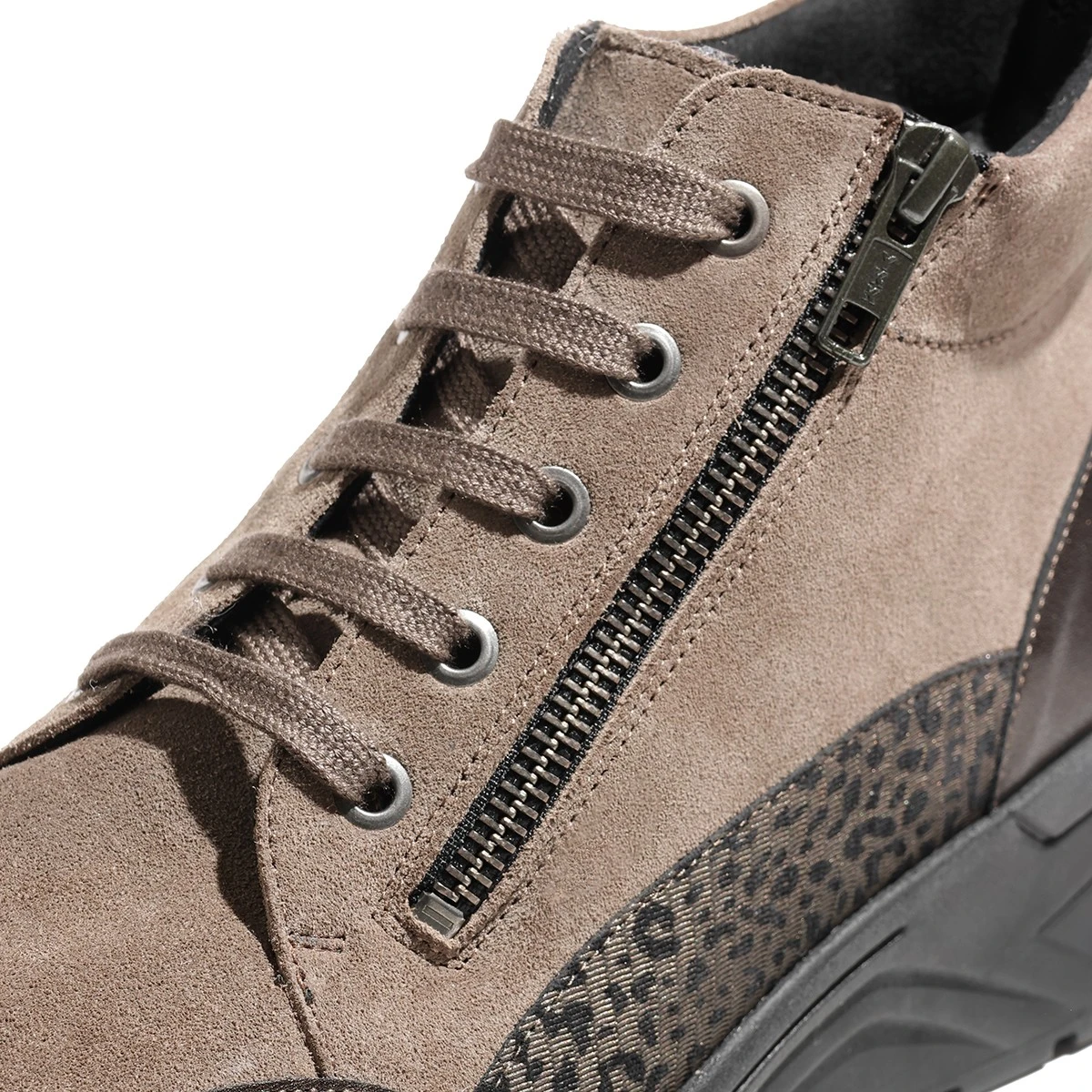 Стильные зимние кроссовки Solidus на колодке Karma Stiefel выполнены из мягкой замши в комбинации с металлизированной кожей и акцентным элементом в виде анималистического принта. Женские кроссовки на высокой подошве (4,7 см в подпяточной зоне) – практичное решение на зиму.