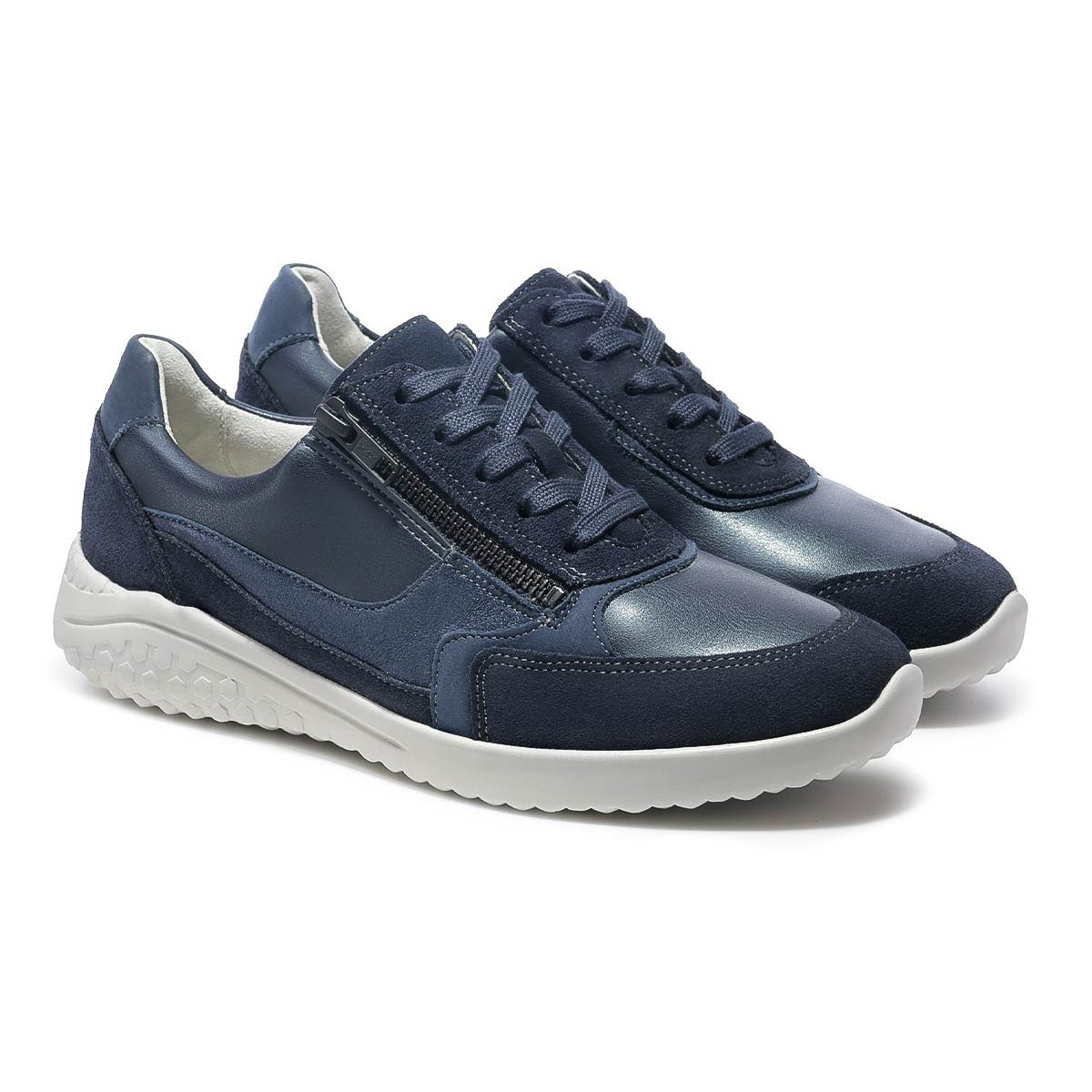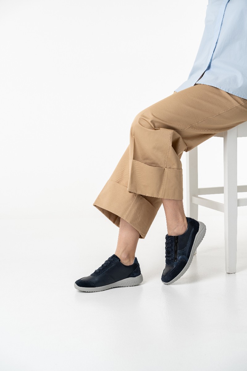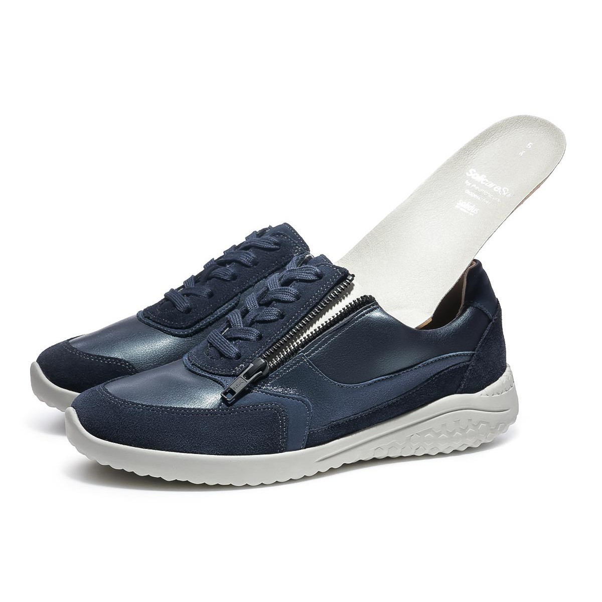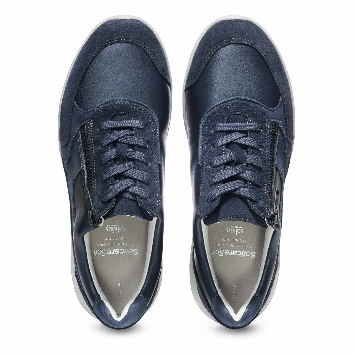Модели линии Solicare Soft немецкого бренда Solidus созданы специально для чувствительных стоп, которым нужна особенная забота. Эти супер-легкие кроссовки в синем цвете подходят на широкую стопу и высокий подъем. Кроссовки обладают особенной легкостью, благодаря специальной подошве с сотовой структурой.