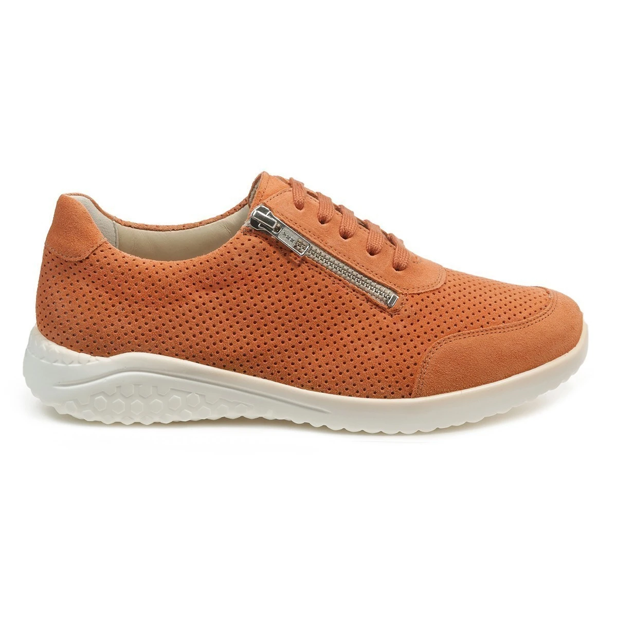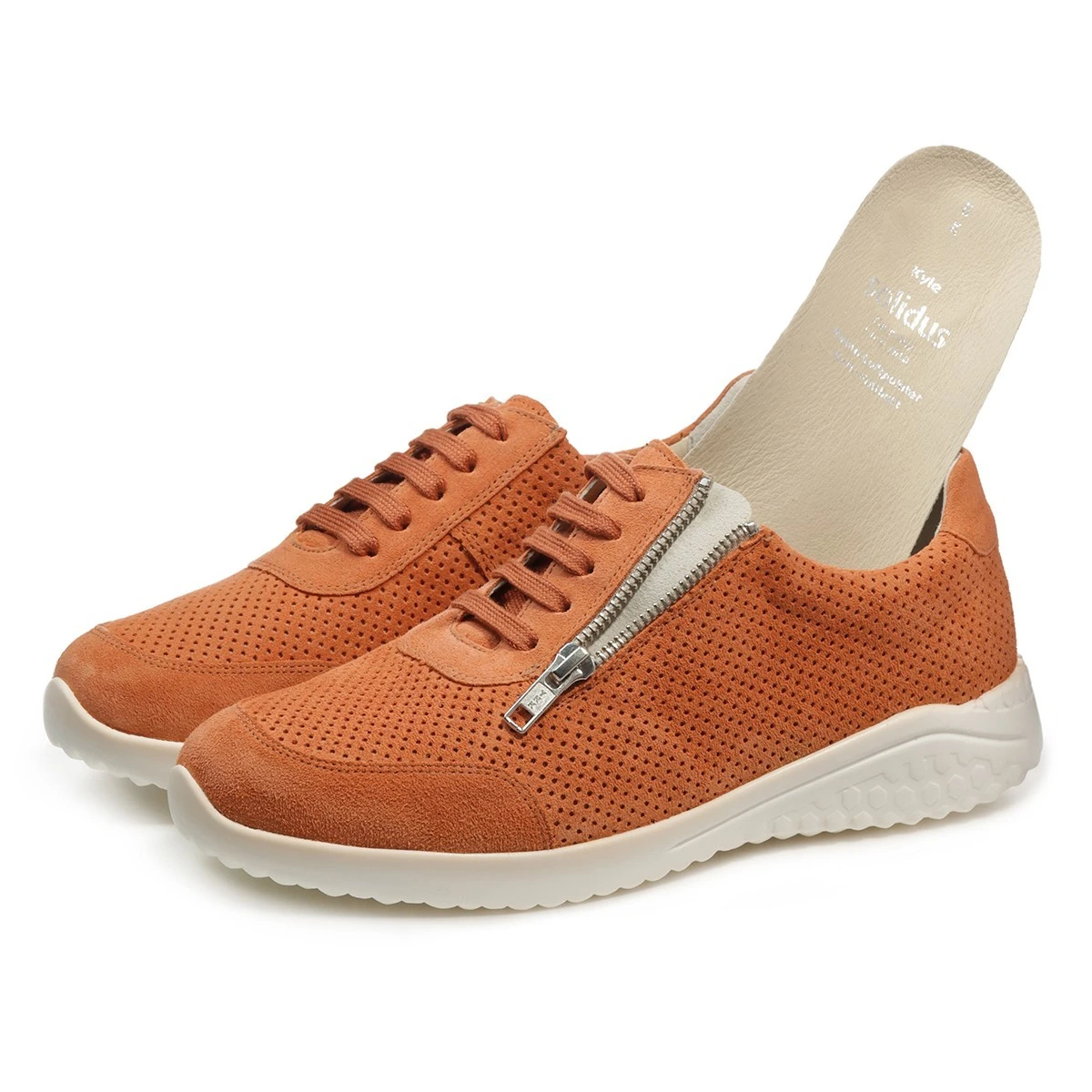 Мягкие, удобные и яркие кроссовки на колодке Kyle выполнены из натуральной замши, имеют полноту К и подходят на широкую стопу и высокий подъем. Шнуровка позволяет отрегулировать полуботинки под собственные параметры, молния надежно зафиксирует обувь на ноге. Съемная стелька из пробкового дерева со вставками - амортизаторами поддерживает своды стопы.