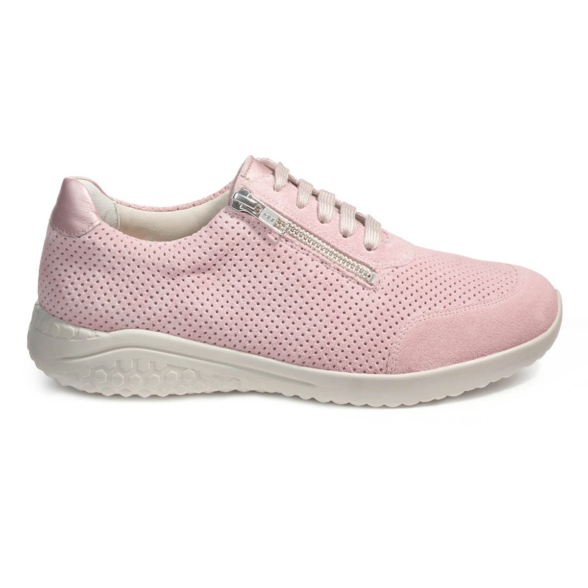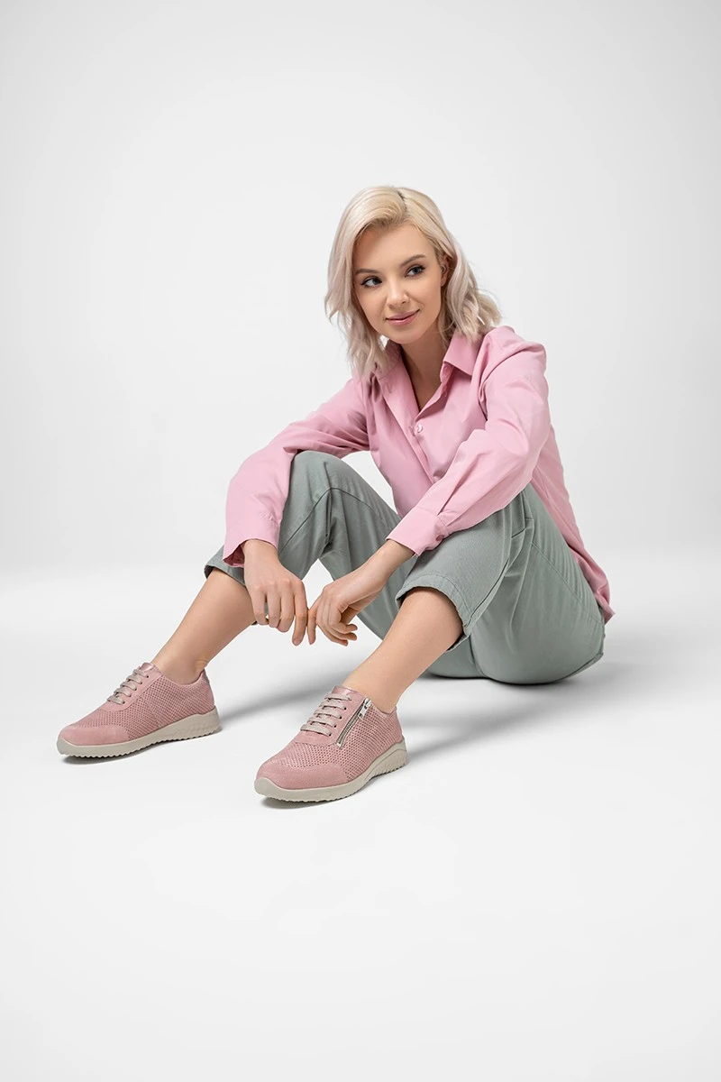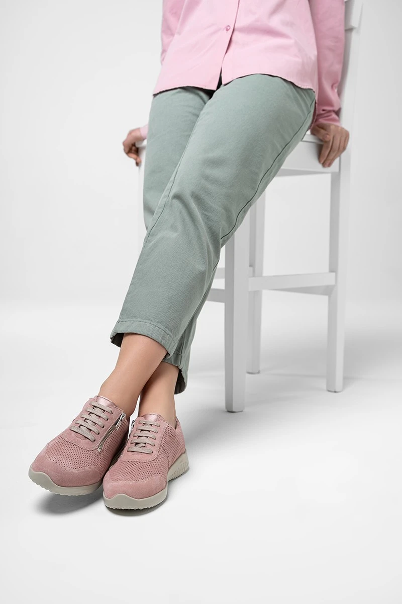 Супер-легкие кроссовки на невысокой подошве нежно-розового оттенка со шнурками в тон подходят на широкую стопу и высокий подъем. Модель выполнена из мягчайшей замши и обладает особенной легкостью благодаря специальной подошве с сотовой структурой, поэтому мгновенно стала хитом продаж!