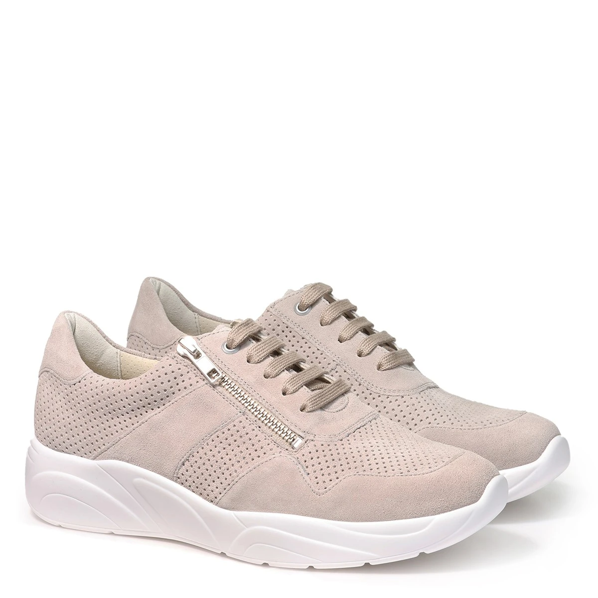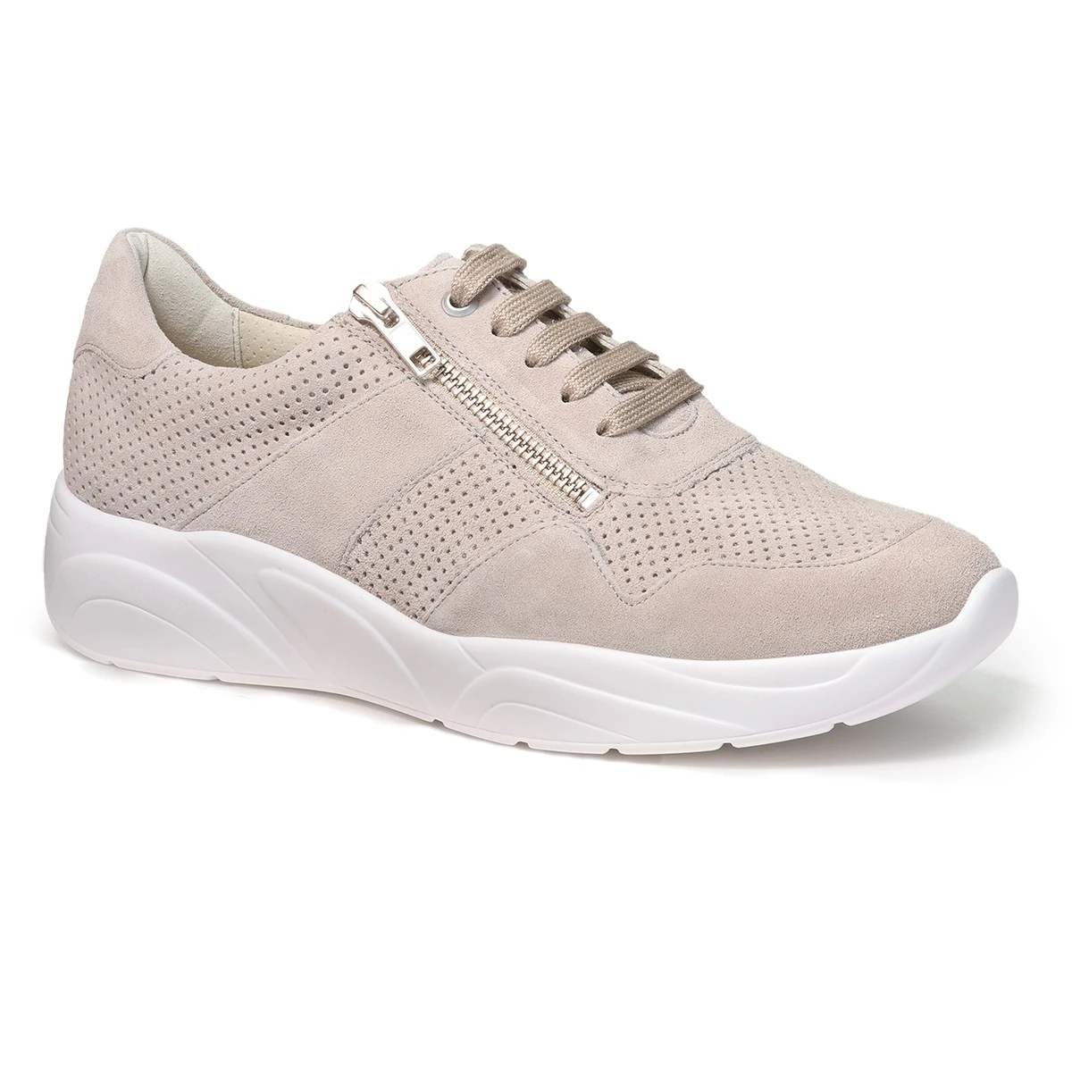 Молочно-бежевые кроссовки на колодке Kea с высокой подошвой с широкой полнотой стильные и комфортные, идеально подходят в качестве обуви на каждый день. Легкий нейтральный оттенок добавит завершающий штрих к любому образу.