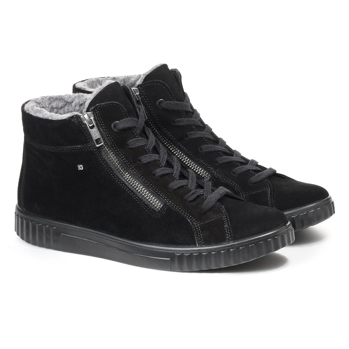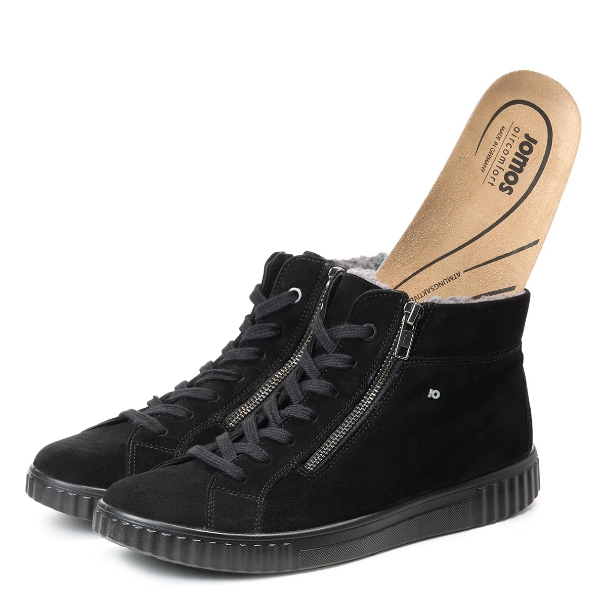 Повседневные высокие кроссовки из мягкой натуральной замши выполнены в увеличенной полноте H. Подкладка из плотной шерстяной байки подходит для поздней осени и ранней зимы, ведь она достаточно теплая для зимы в средней полосе. Мягкая и гибкая подошва собственной разработки Jomos благодаря небольшому весу придает обуви приятную легкость.
