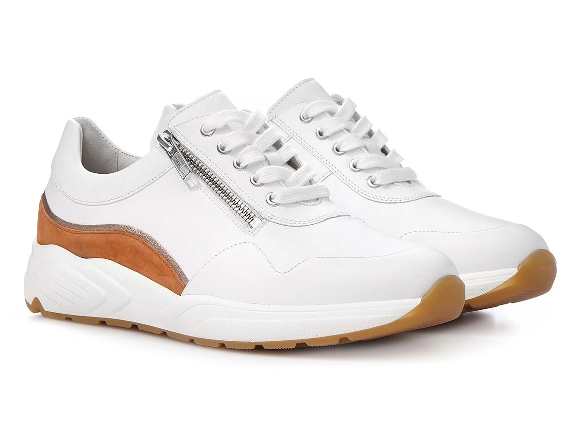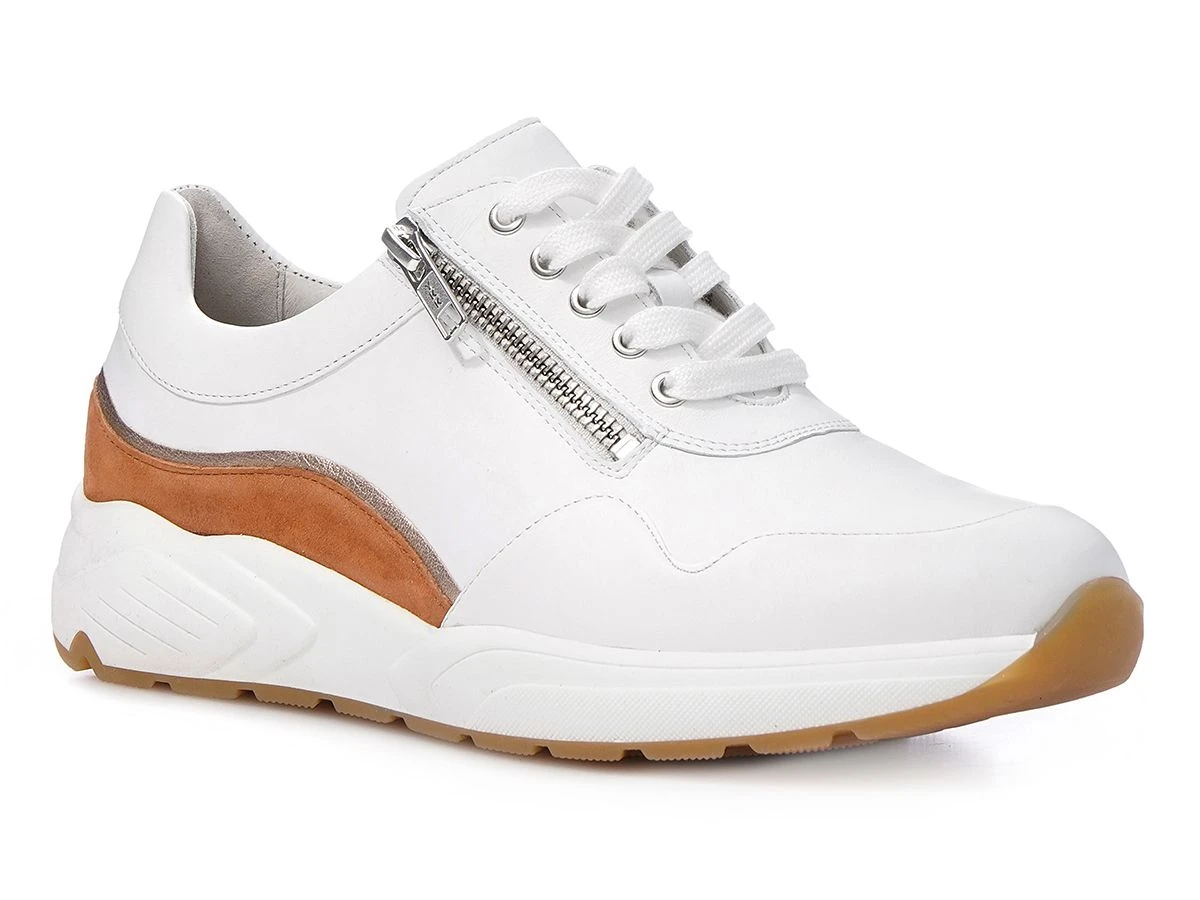 Лови волну! Белые кроссовки на высокой подошве Kea на высокой подошве с увеличенной полнотой стильные и комфортные, идеально подходят в качестве обуви на каждый день. Декоративный элемент волнообразной формы повторяет контур компактной и гибкой подошвы. Волна в цвете коричневый металлик придает спокойному белому динамичности. Спортивные и суперлегкие кроссовки с переливающимся элементом будто созданы для тех, кто всегда в движении. Классические оттенки открывают безграничные возможности сочетаний и образов. Отлично подойдут для поздней весны, лета или ранней осени.