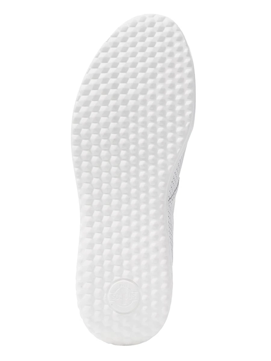 Супер-легкие белые кроссовки на невысокой подошве подходят на широкую стопу и высокий подъем. Модель обладает особенной легкостью благодаря специальной подошве с сотовой структурой, поэтому мгновенно стала хитом продаж! Кроссовки выполнены из высококачественной натуральной кожи, перфорация в материале верха дает дополнительный воздухообмен. Съемная стелька со вставками-амортизаторами поддерживает своды стопы, а гибкая, легкая, износоустойчивая подошва с воздушными подушками обладает исключительной амортизацией.