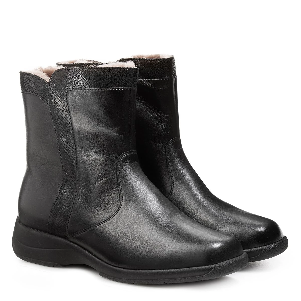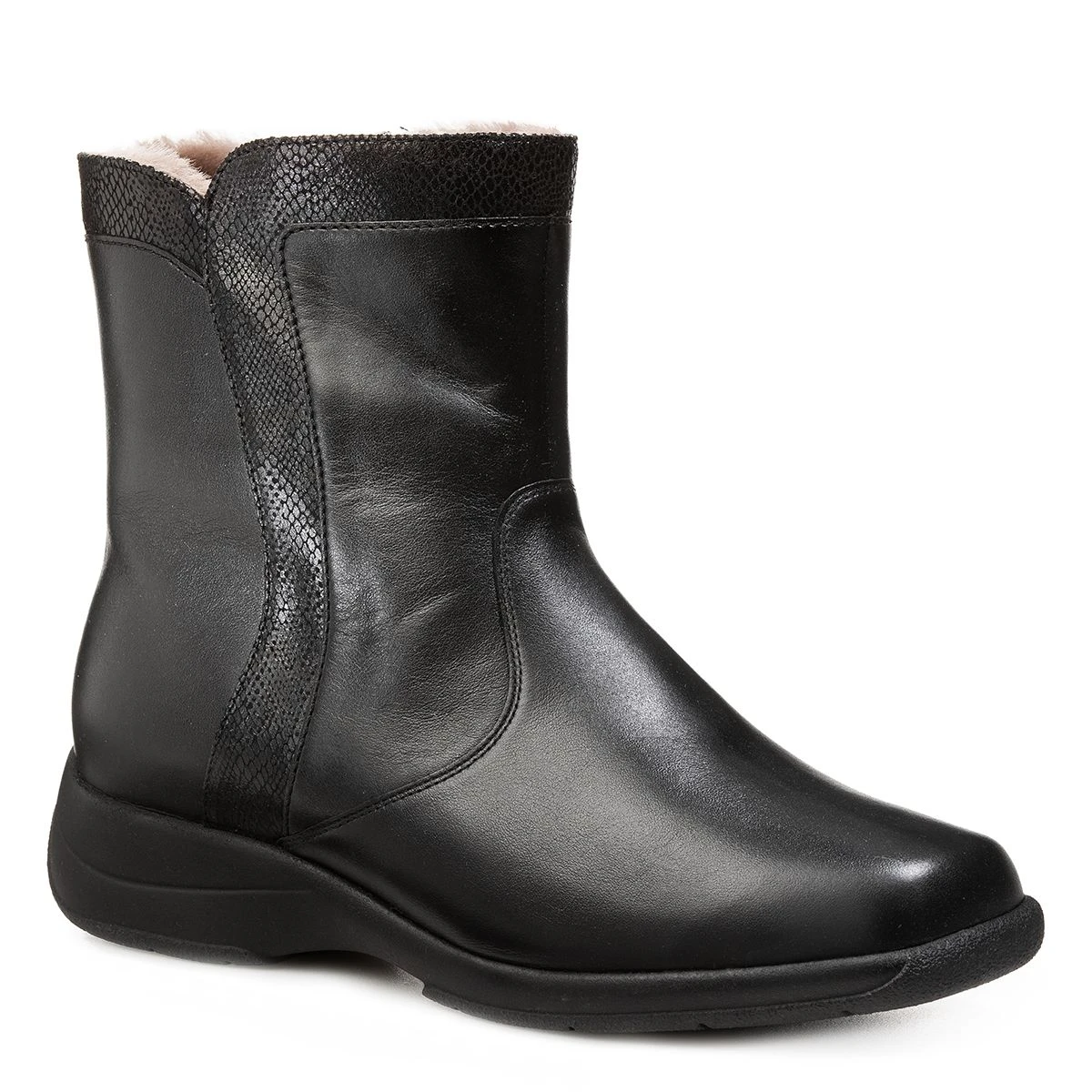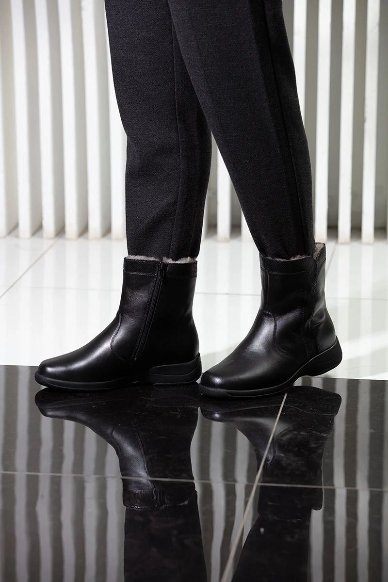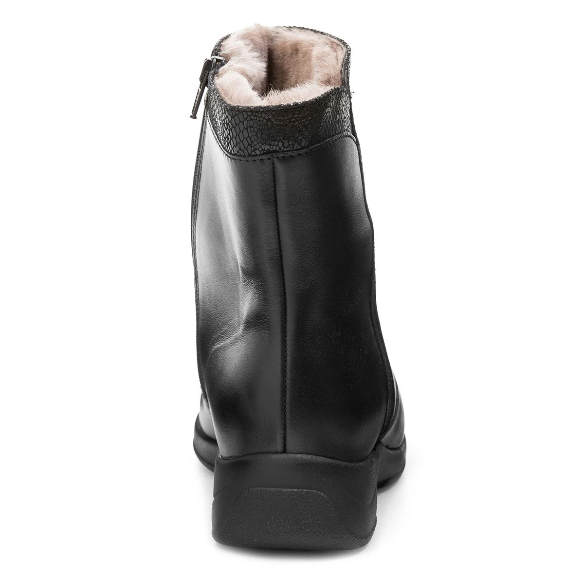 Зимние полусапоги на молнии практичного черного цвета на колодке Mary Stiefel с выделенным каблуком теплые, мягкие и удобные, имеют экстра-широкую полноту. Высота закрывает часть икры, поэтому даже в укороченных брюках будет тепло. Подходят в качестве обуви на каждый день и согреют в холодное время года.