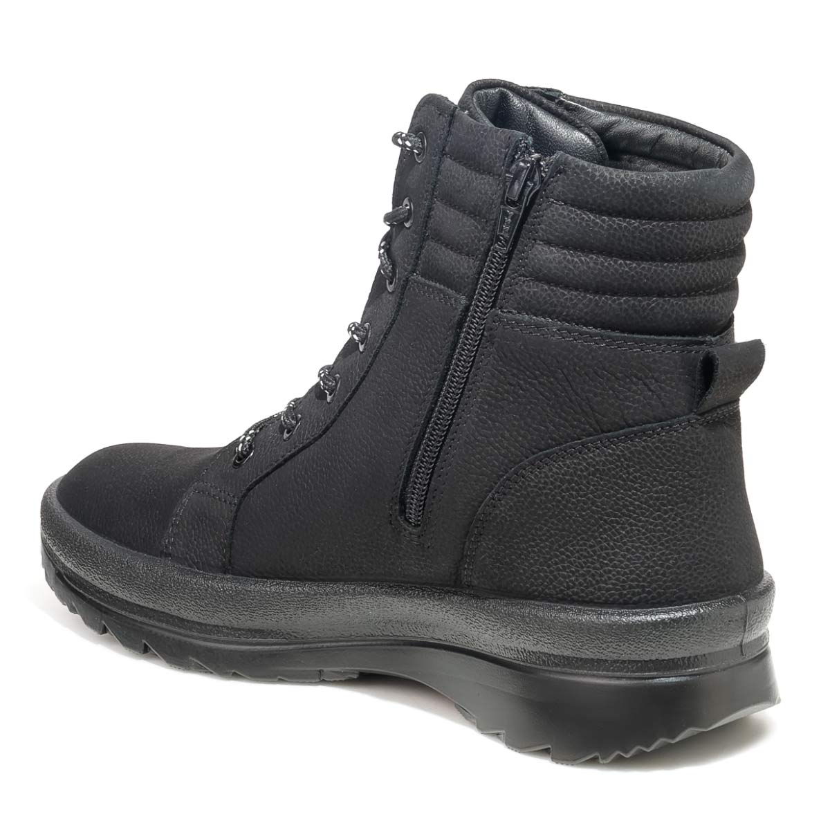 Зимние женские полусапожки выполнены из мягкого и прочного натурального нубука, украшены меховой опушкой по верхнему краю в тон обуви. Для максимального удобства модель оснащена двойной застежкой - шнуровкой и молнией, которые максимально облегчают надевание и регулировку по стопе. Молния быстро и надежно фиксирует обувь, шнуровка удобно регулируется по ноге.