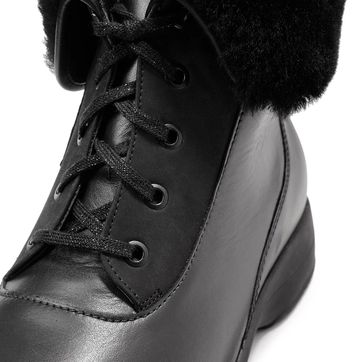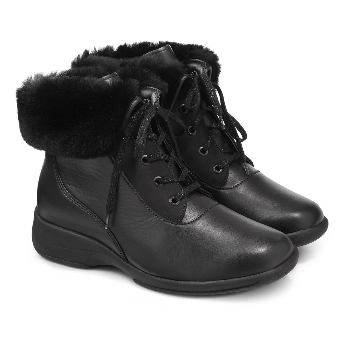 - зимние полусапоги с отворотом на шнурках ;
