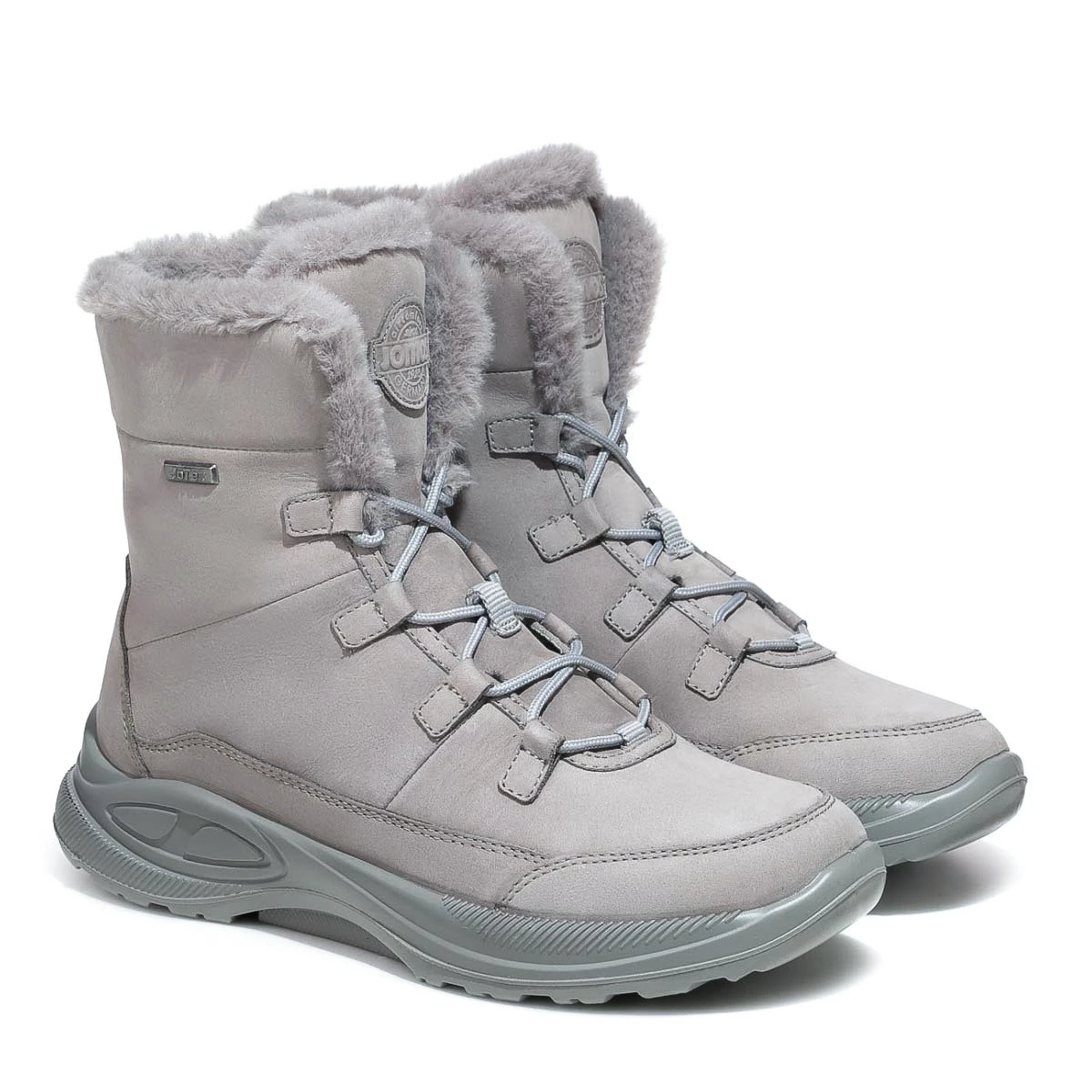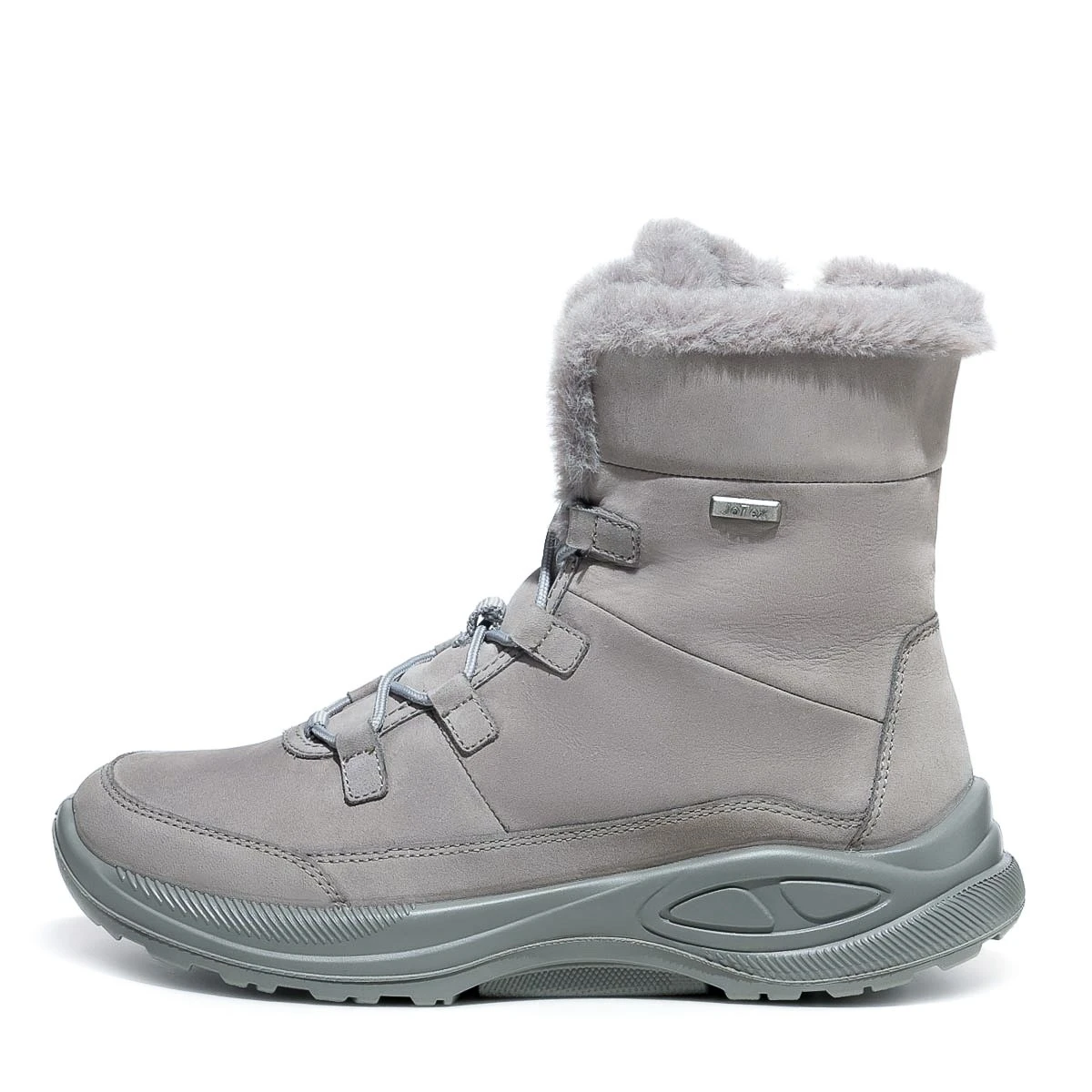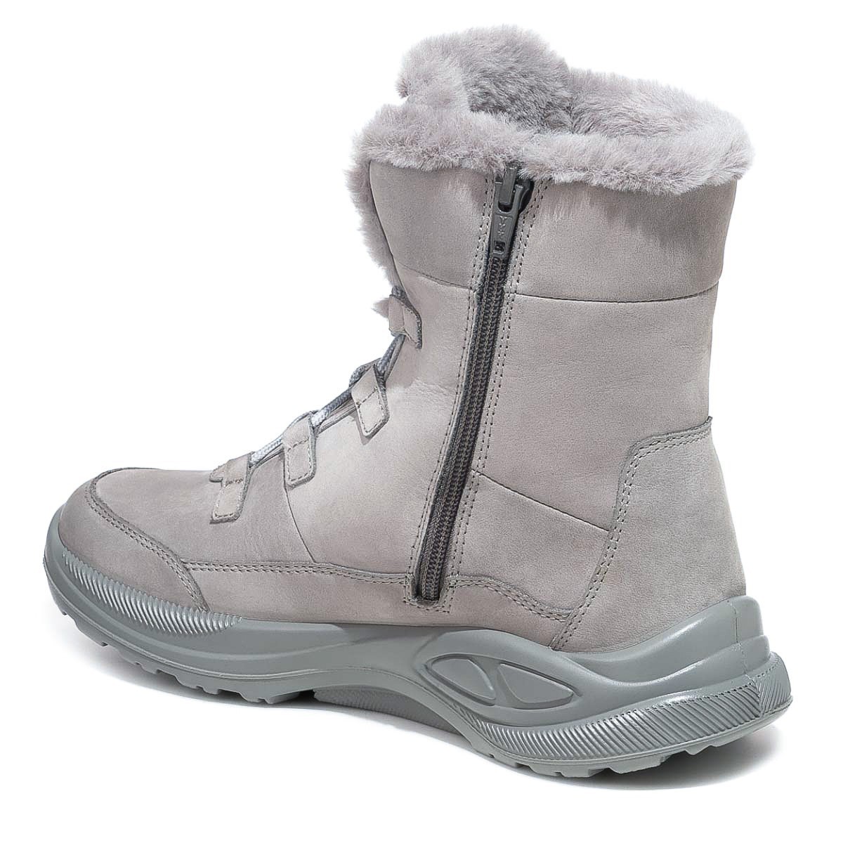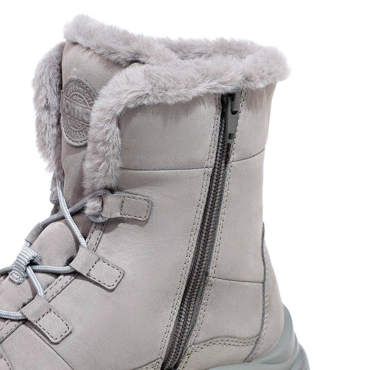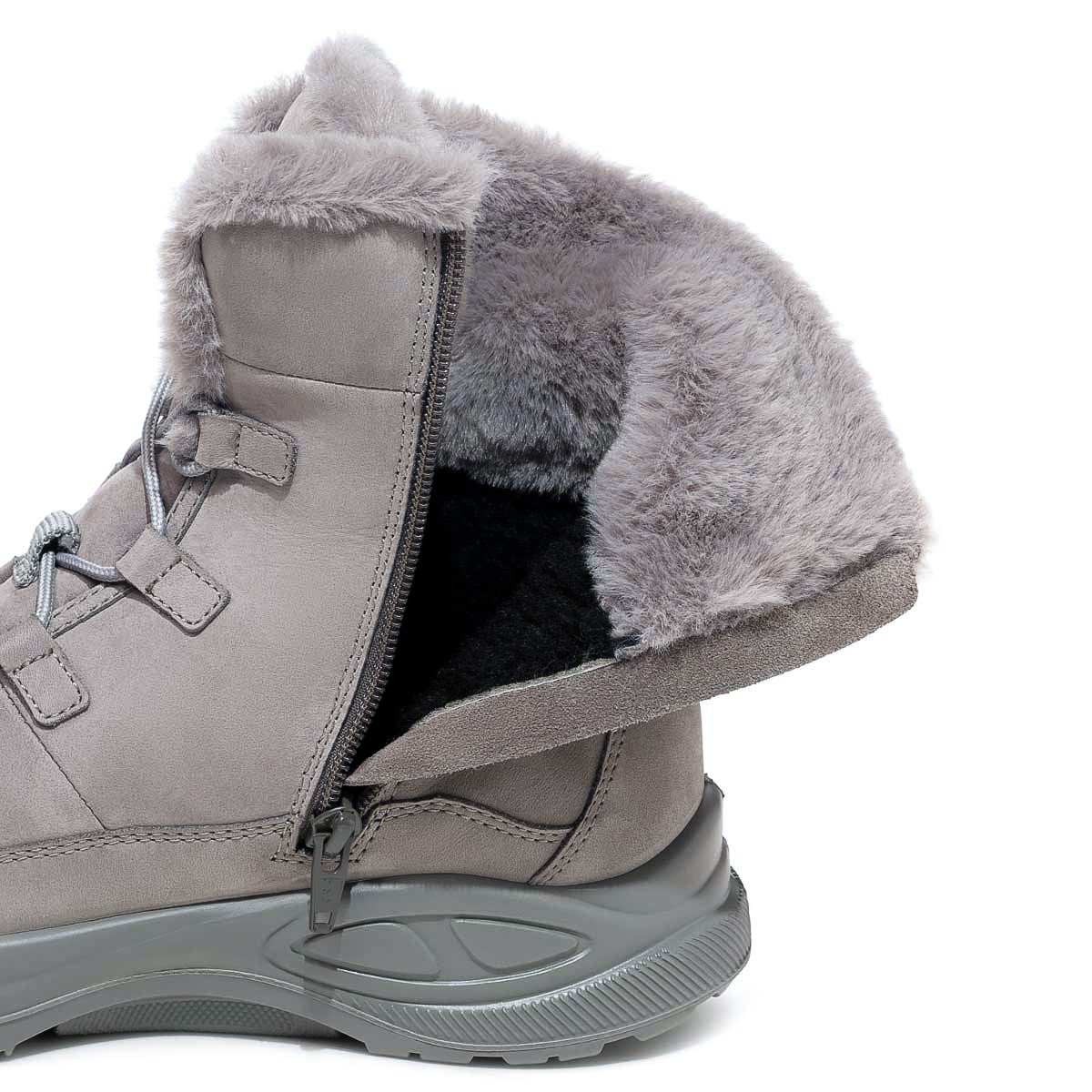 Светло-серые полусапожки в широкой полноте К подходят на широкую стопу и высокий подъем. Для максимального удобства модель оснащена двойной застежкой - шнуровкой и молнией, которые максимально облегчают надевание и регулировку по стопе. Молния быстро и надежно фиксирует обувь, шнуровка удобно регулируется по ноге.