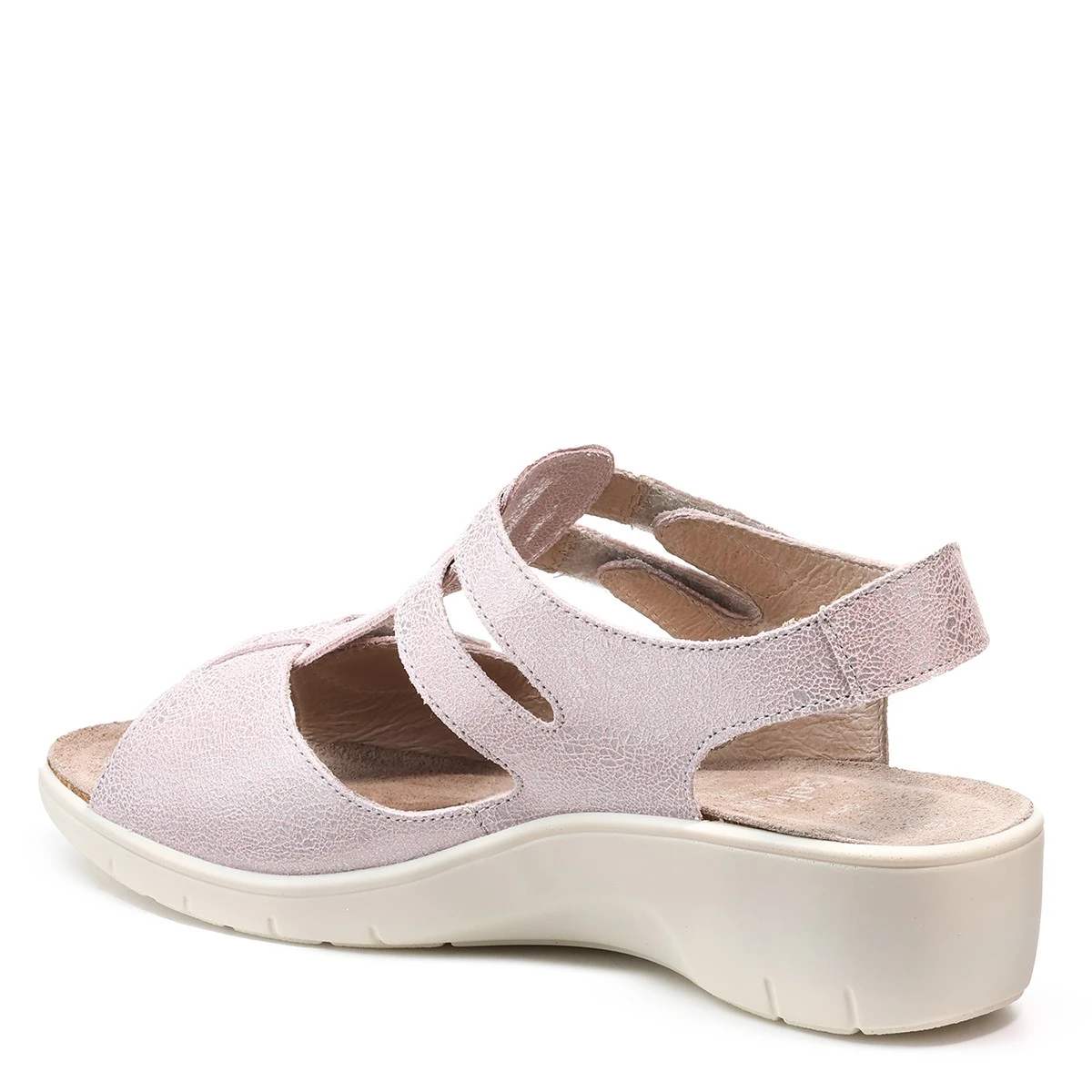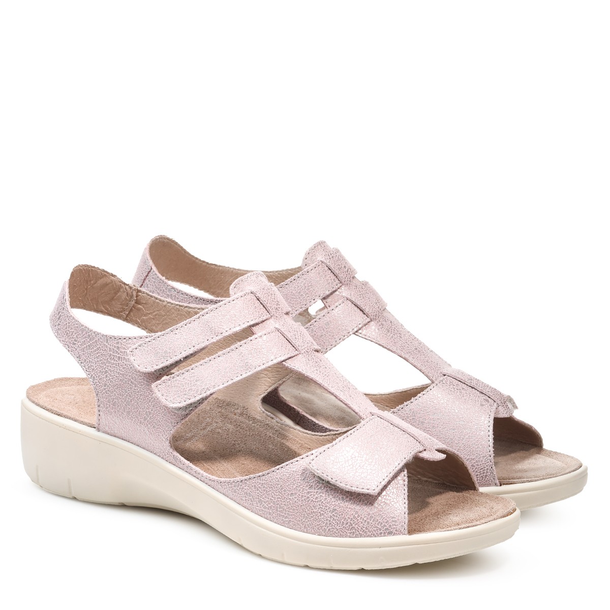 Женские босоножки спокойного пудрового оттенка на колодке Gina - легкая и удобная модель для изумительного завершающего штриха летнего образа. Элегантный перепад подошвы подчеркнет хрупкость щиколотки и при этом не даст ногам устать.