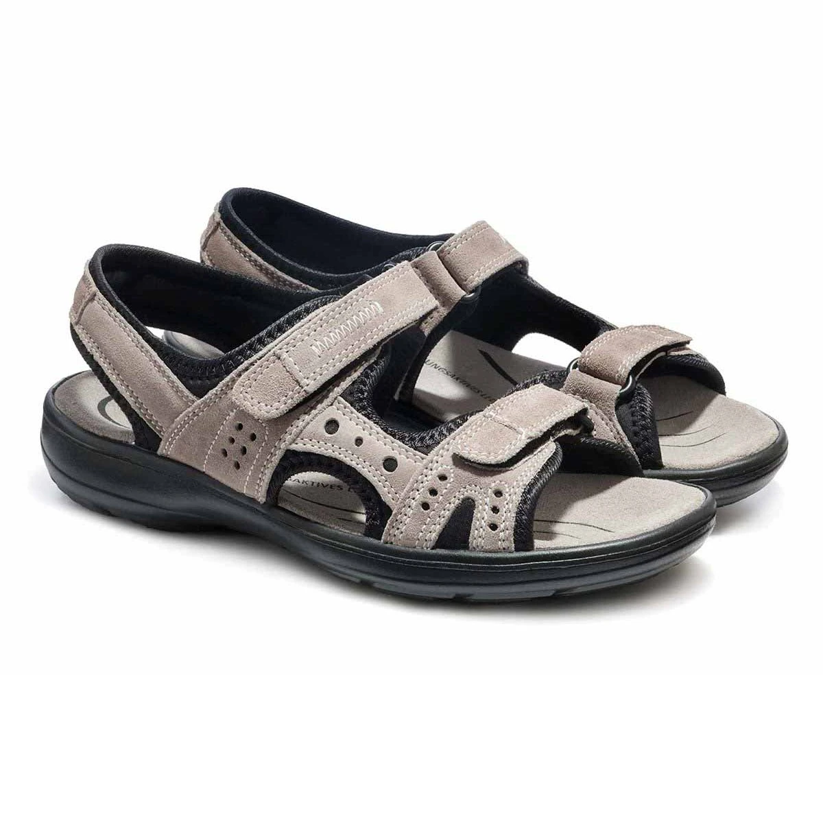 Легкие сандалии в увеличенной полноте выполнены из натуральной замши в сочетании с мягкой текстильной подкладкой для максимального комфорта.