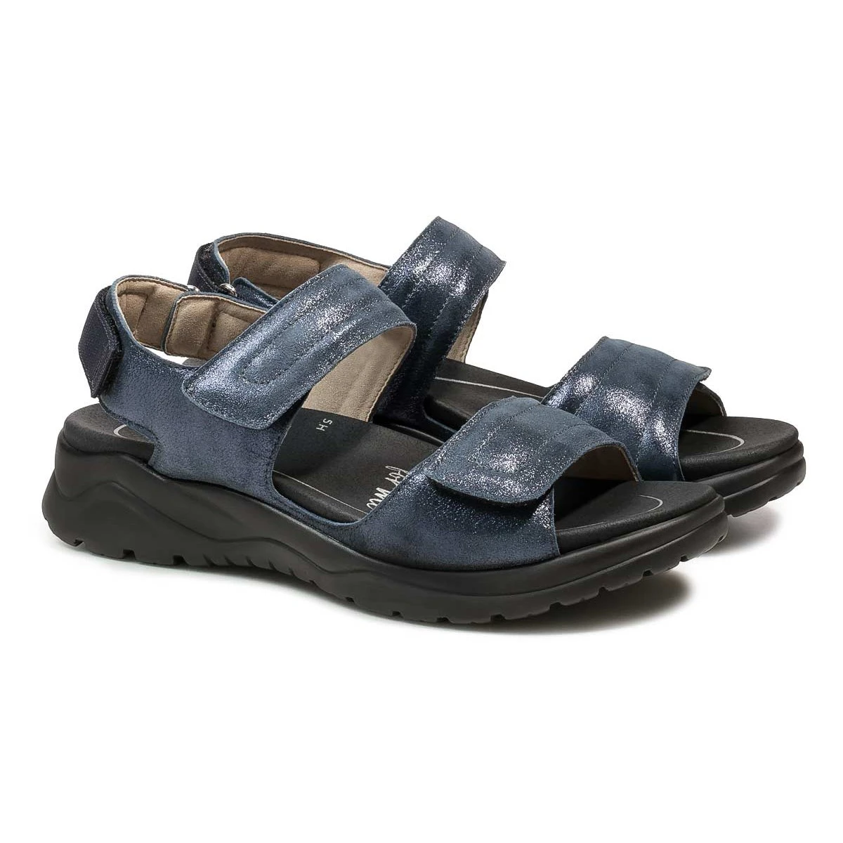 Женские сандалии в увеличенной полноте обеспечивают полную раскрываемость и удобную регулировку по ноге при помощи трех широких ремешков с эргономичной застежкой велкро. Верх выполнен из натуральной кожи.