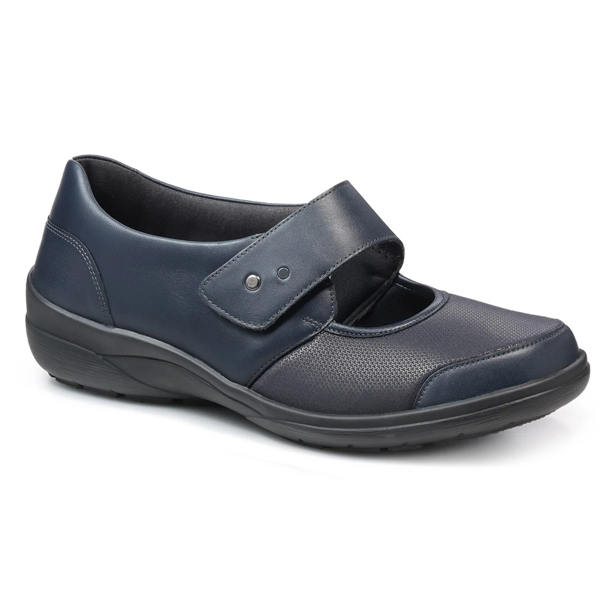 Темно-синие туфли в стиле Мэри Джейн подходят на высокий подъем и очень широкую стопу, а также при выраженной отечности стопы.