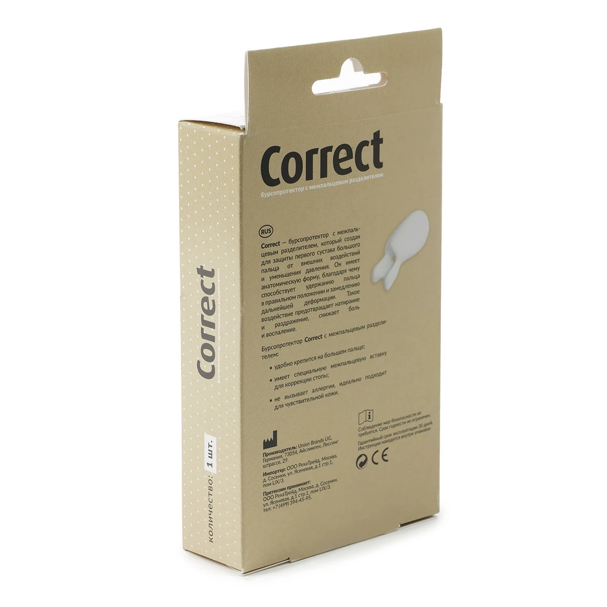 Бурсопротектор Correct с межпальцевым разделителем создан для защиты первого сустава большого пальца от внешних воздействий и уменьшения давления. Он имеет анатомическую форму, благодаря чему, способствует удержанию пальца в правильном положении и замедлению дальнейшей деформации. Такое воздействие предотвращает натирание и раздражение, снижает боль и воспаление.