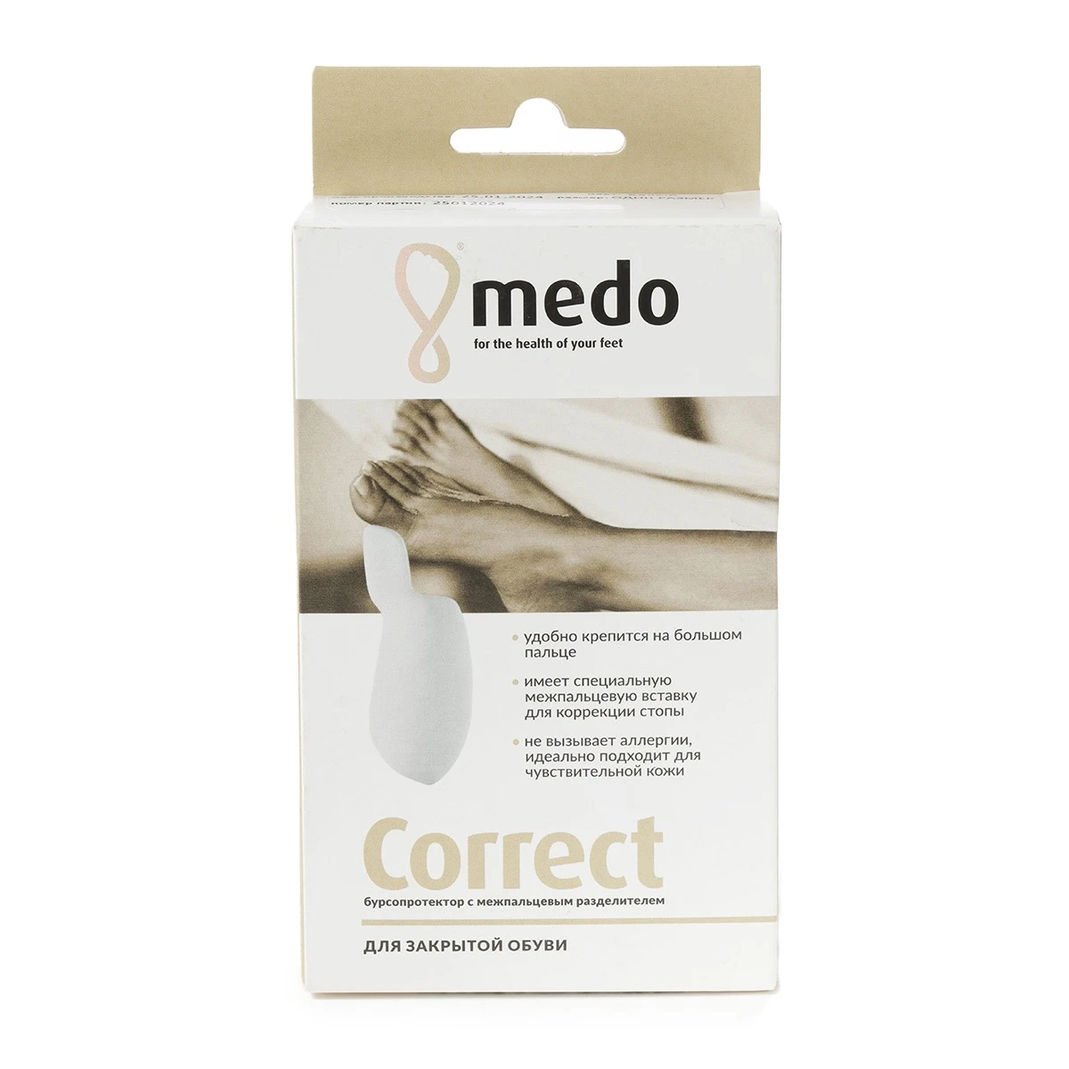 Бурсопротектор medo удобно крепится на большом пальце, имеет специальную межпальцевую вставку для коррекции стопы, не вызывает аллергии, идеально подходит для чувствительной кожи, а также для всех видов закрытой обуви.
