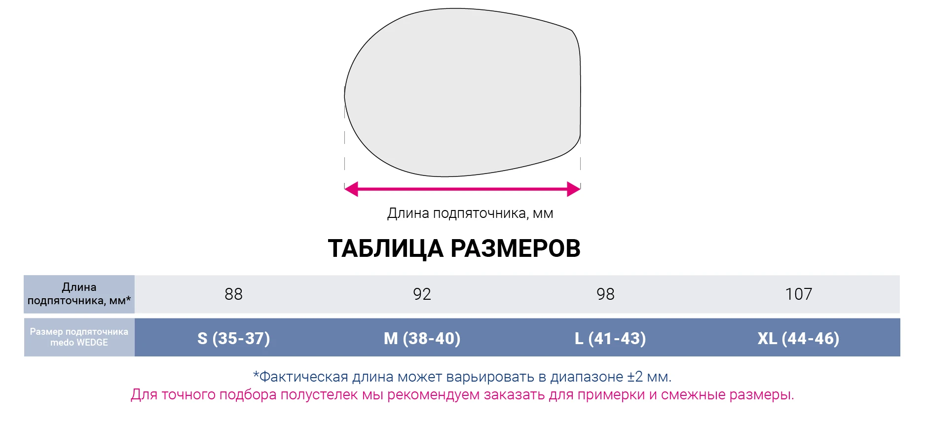 Анатомические подпяточники medo Wedge рекомендованы для коррекции оси пяточной кости. Они могут быть использованы как внутренний или внешний компенсатор в зависимости от деформации (вальгус/варус). Подпяточники клиновидные medo Wedge корректируют способствуют правильной постановке голеностопных суставов и уменьшают болевые ощущения в пяточной области.