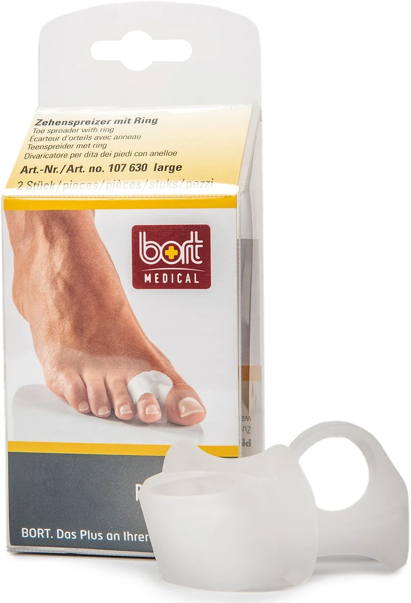 Силиконовые корректоры Bort действуют как разделители пальцев при деформации. Они предотвращают натирания и мозоли, убирают давление между пальцами и в обуви. Эти корректоры выполнены из нескользящего, безопасного для кожи медицинского силикона. Материал отличается высокой гигиеничностью – корректор не впитывает грязь и легко моется.