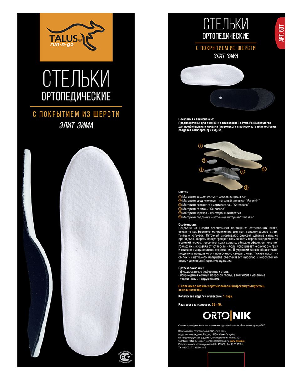 Каркасные ортопедические стельки Talus «Элит зима» с покрытием из натуральной шерсти – отличное решение для профилактики и коррекции плоскостопия в холодное время года. Они поддерживают своды стопы, разгружают передний свод стопы и снимают усталость и болевой синдром. Благодаря каркасу и пяточному амортизатору снижается ударная нагрузка на суставы нижних конечностей и позвоночник. Амортизатор, валик выполнены из материала CARBOSAN, который отличается упругостью и эластичностью. Натуральная шерсть, из которой состоит верхний слой, сохраняет тепло и повышает комфортность обуви.