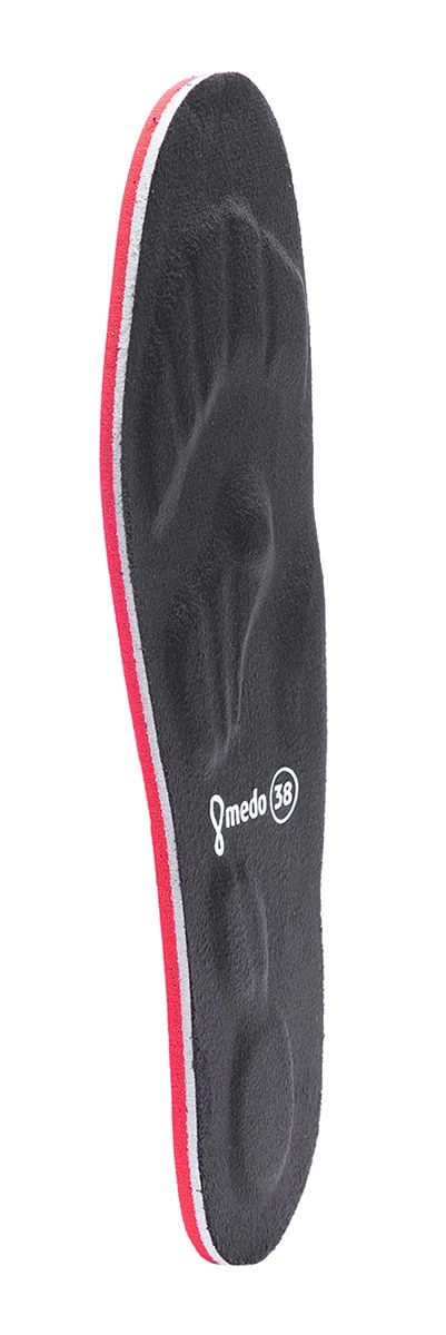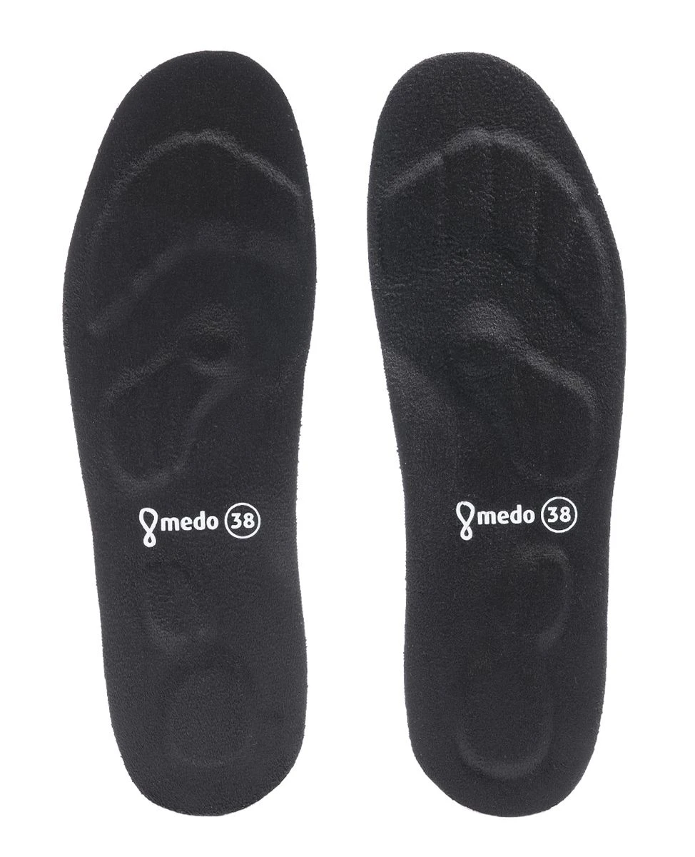 medo Veno Ped — анатомические бескаркасные стельки. Стелька создана из трех слоев исключительно мягких материалов. Верхний слой выполнен из приятной на ощупь микрофибры, что обеспечивает тактильный комфорт и удобство в уходе. Средний слой — из пены memofoam. Из нее сформированы рельефные элементы в области плюсны, продольного свода и пяточной области, которые обеспечивают микромассаж стоп при ходьбе. Нижний слой из вспененного латекса обеспечивает исключительную мягкость стелек и эффективно амортизирует ударные нагрузки.