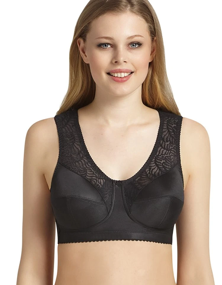 В широкие бретели добавлена мягкая подкладка – благодаря ей они не врезаются в кожу, не натирают и эффективно разгружают спину и шею. Чашечки, состоящие из трех элементов, поддерживают форму и фиксируют грудь. По линии декольте и проймы предусмотрены мягкие флисовые ленты, обеспечивающие идеальное прилегание и комфортную посадку.