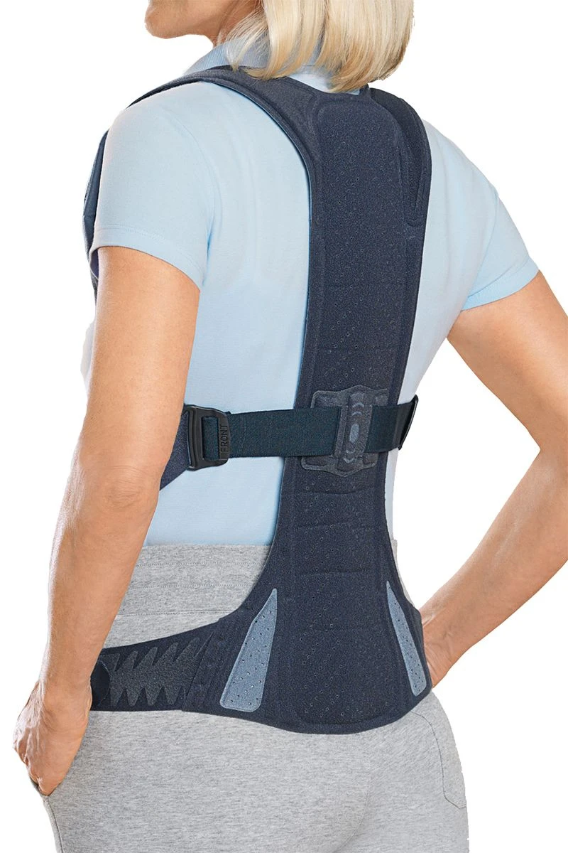 В материале присутствуют вентиляционные отверстия, что способствует хорошей циркуляции воздуха. При правильном моделировании изделие идеально прилегает к телу, не смещается и не натирает кожу благодаря специальным манжетам и эргономическому дизайну. Специальная конструкция ремней не позволяет им скручиваться, что облегчает надевание и обеспечивает комфорт при использовании. Особенность конструкции передней панели застежки не препятствует наклону вперед. Привлекательный дизайн позволяет использовать изделие поверх одежды. При желании ортез можно с легкостью использовать под верхней одеждой, поскольку он отличается небольшой толщиной.