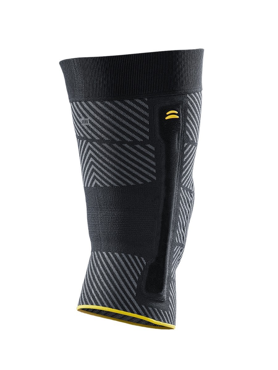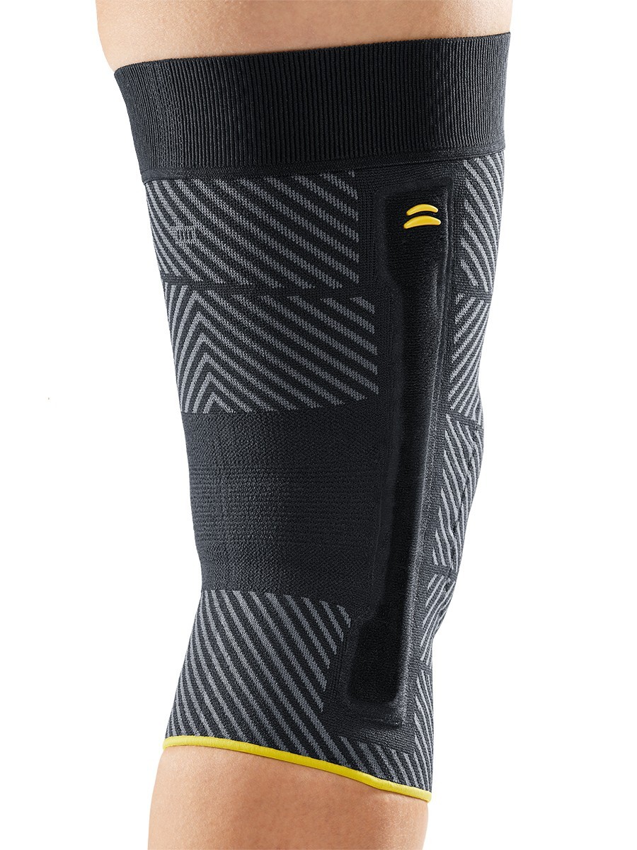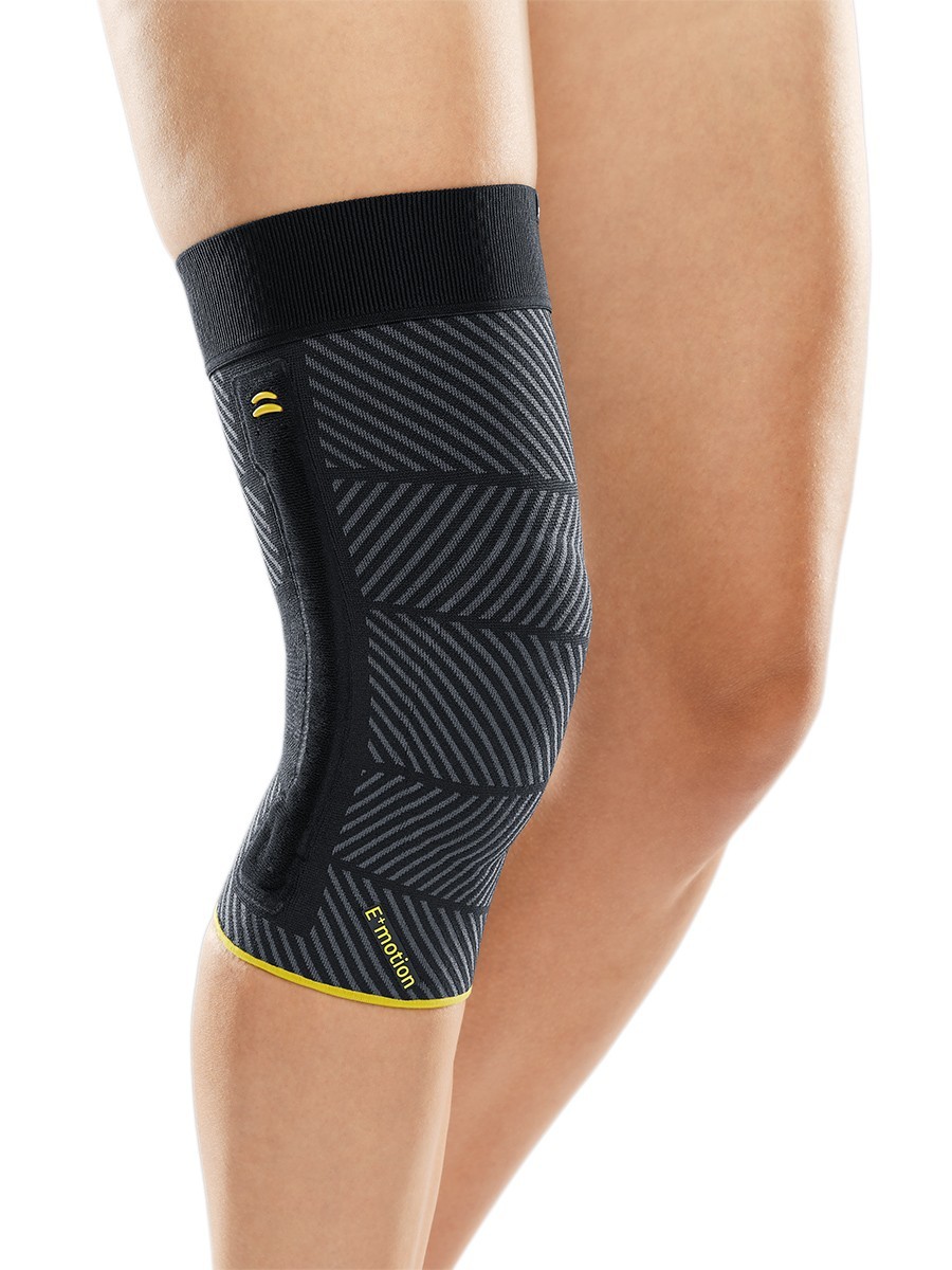 Инновационный бандаж Genumedi E+motion 3.0 на широкое бедро с вставками из кварцевого силикона оказывает стабильное компрессионное воздействие и массажный эффект на мягкие ткани коленного сустава. В результате улучшается кровообращение, быстрее исчезают отеки, болевой синдром, уменьшается риск травм. Бандаж высокоэффективен при физической активности.