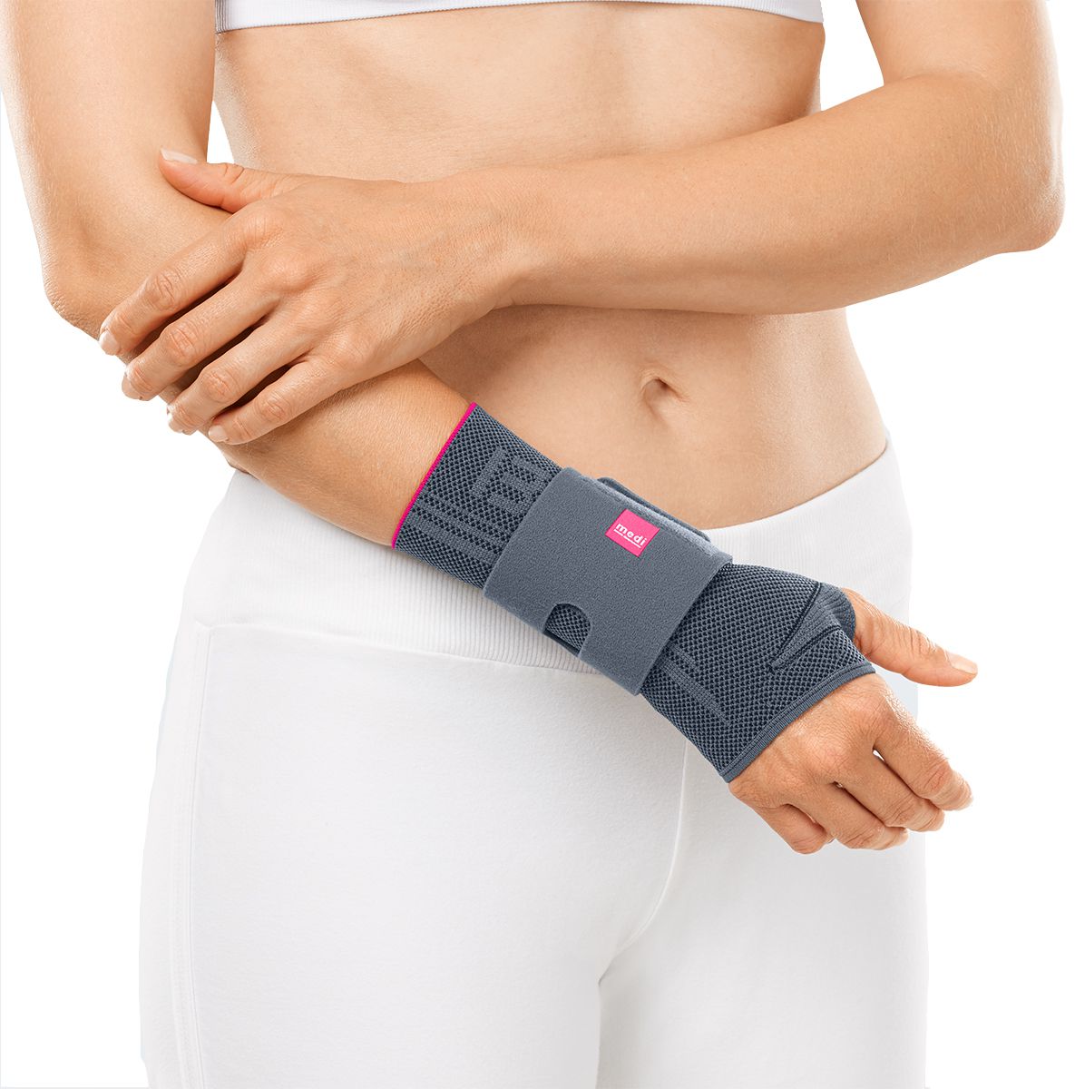 Дополнительная информация: при надевании следите, чтобы угол между большим пальцем и кистью составлял 45°. При необходимости подушечка может использоваться для усиления стабилизации большого пальца.