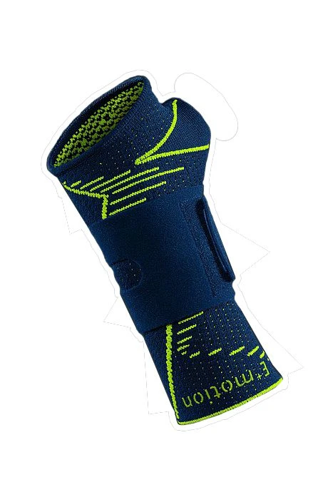 Все потребности спортсменов учтены в лучезапястном бандаже Manumed active E+motion. Это идеальное решение для лечения травм, артроза, нестабильностей и других заболеваний запястья, которые могут возникнуть при длительных спортивных нагрузках. Он состоит из вязаной манжеты, стабилизирующей шины и широкого фиксирующего ремня. Шина располагается на ладонной поверхности и поддерживает даже массивную кисть. Компрессионная ткань улучшает кровообращение, что способствует быстрому разрешению отека (гематомы) и ускоренной регенерации.