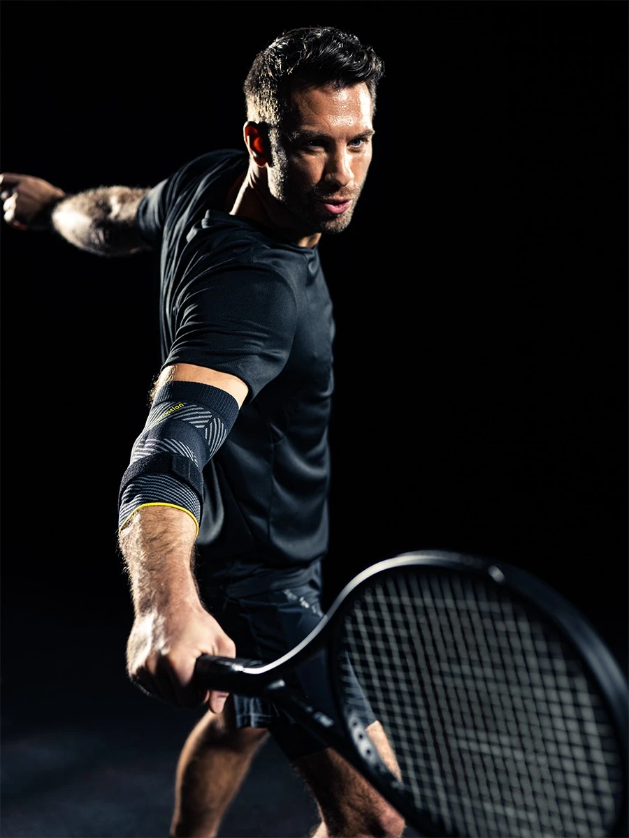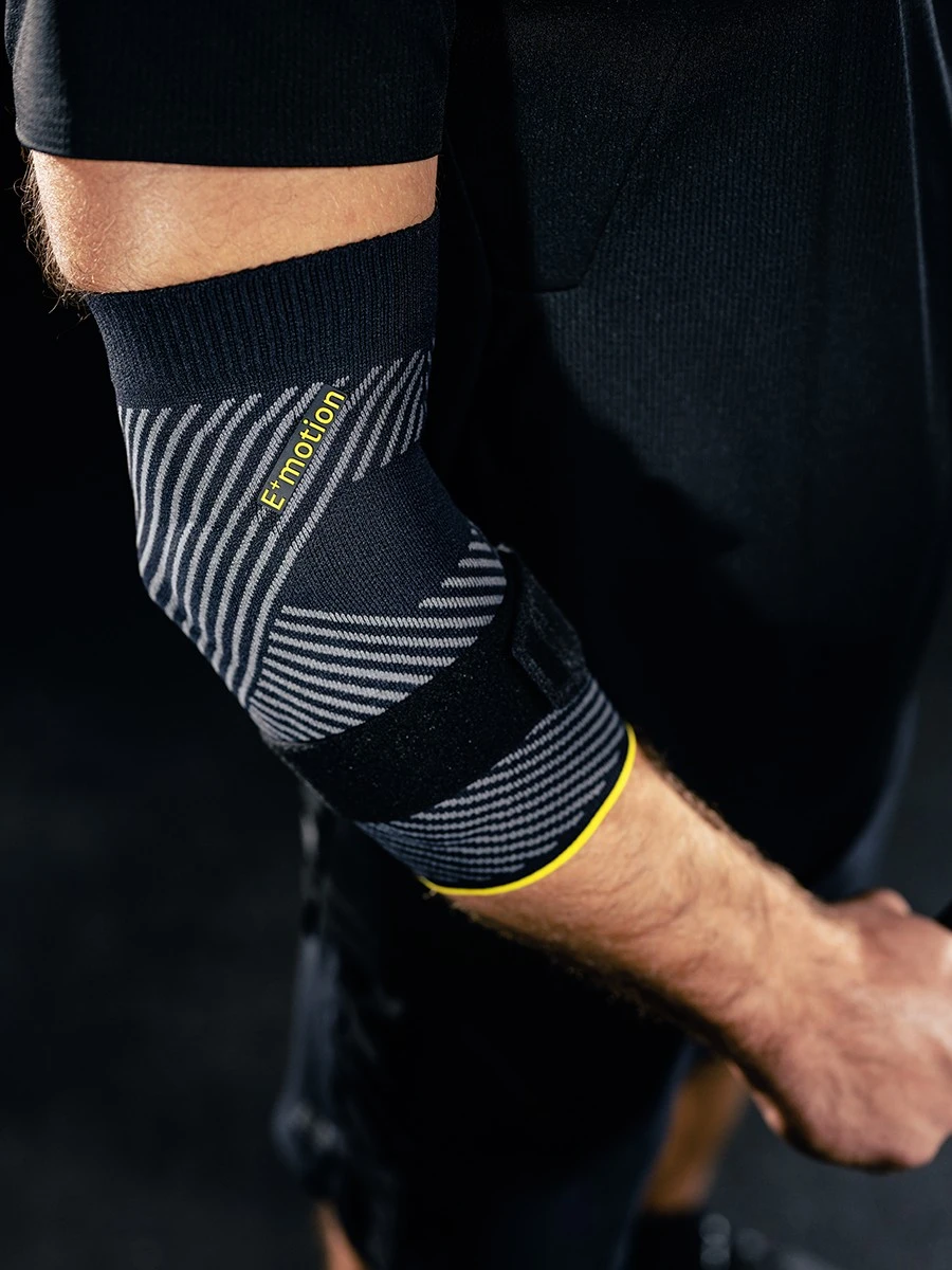 Инновационный компрессионный бандаж Epicomed E+motion 3.0 высокоэффективен при физической активности. Благодаря сверхплотной вязке полотна обеспечивается высокая и стабильная компрессия при физической нагрузке, улучшается кровообращение, а 3D-вставка из кварцевого силикона массирует и помогает уменьшить отек, воздействуя на сухожилия мышц предплечья.