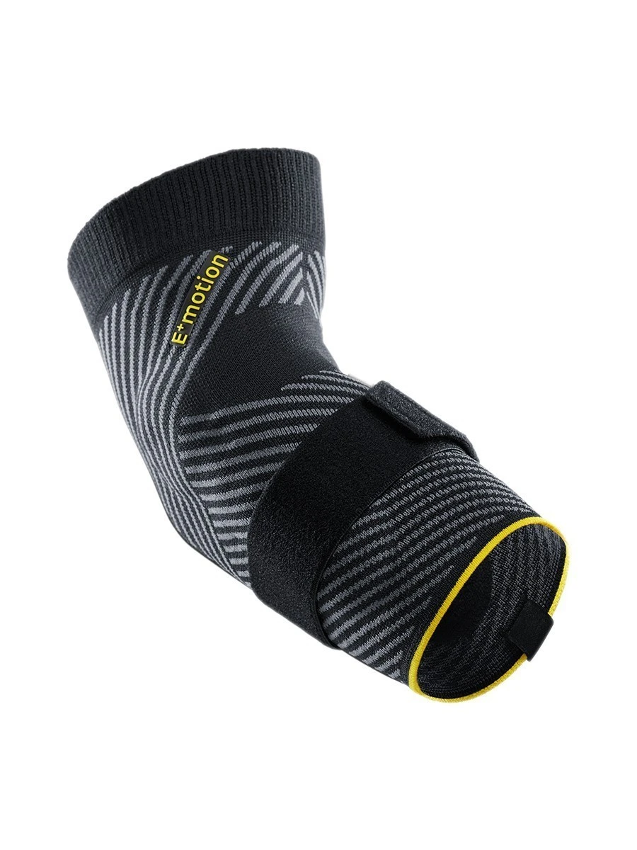 Epicomed E+motion 3.0 имеет противоскользящую манжету в верхней части изделия, в структуре вязки которой используется силиконовая нить, что снижает вероятность сползания или перекручивания бандажа при движениях. Технология вязки Dry Skin в комбинации с шерстью мериноса позволяет активнее отводить влагу и тепло, поэтому кожа остается сухой, кроме того, волокна шерсти мериноса препятствуют образованию неприятного запаха. Бандаж имеет увеличенную зона комфорта в области сгиба и съемный ремешок со шкалой уровня давления. Стильный дизайн позволяет использовать изделие практически с любой спортивной одеждой.