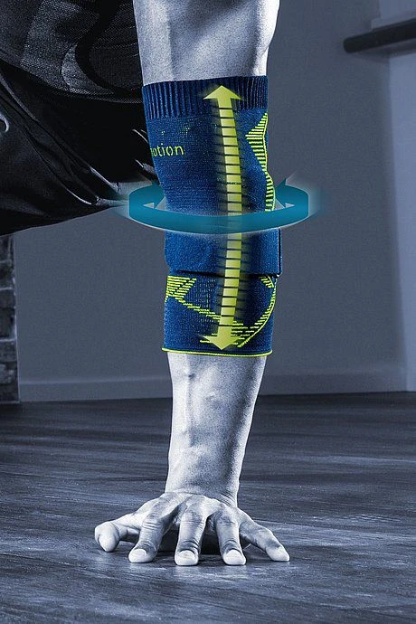 Уникальные дышащие материалы в сочетании с шерстью мериноса обеспечивают оптимальный температурный режим у поверхности кожи в любое время года. Благодаря инновационной ткани бандаж эффективно выводит избыток влаги, сохраняя оптимальную влажность кожных покровов. Благодаря специальной технологии вязки изделие повторяет особенности строения конечности и идеально прилегает к телу, что необходимо для оптимального компрессионного воздействия. Использование бандажа отличается высоким комфортом, ведь его края не врезаются в кожу. Стильный дизайн бандажа позволяет использовать его практически с любой спортивной одеждой.