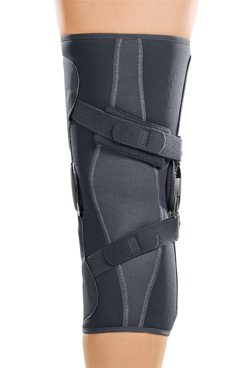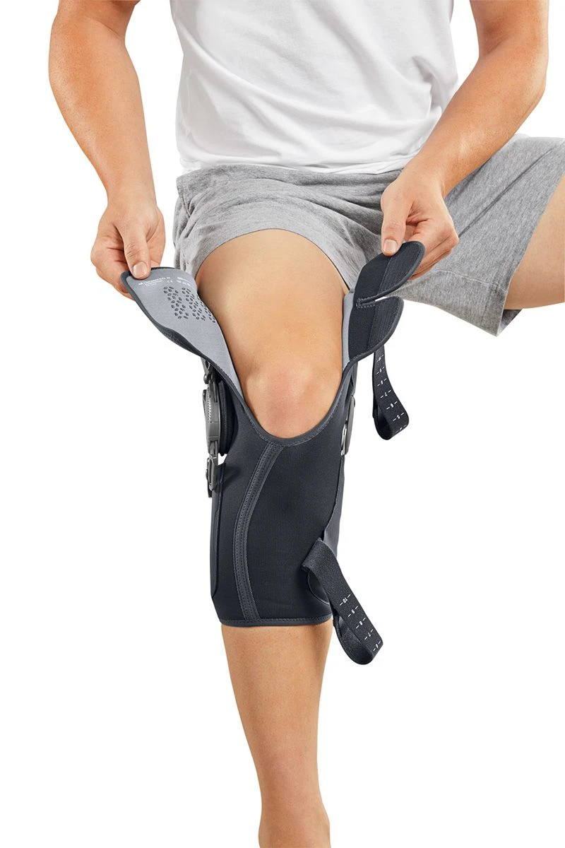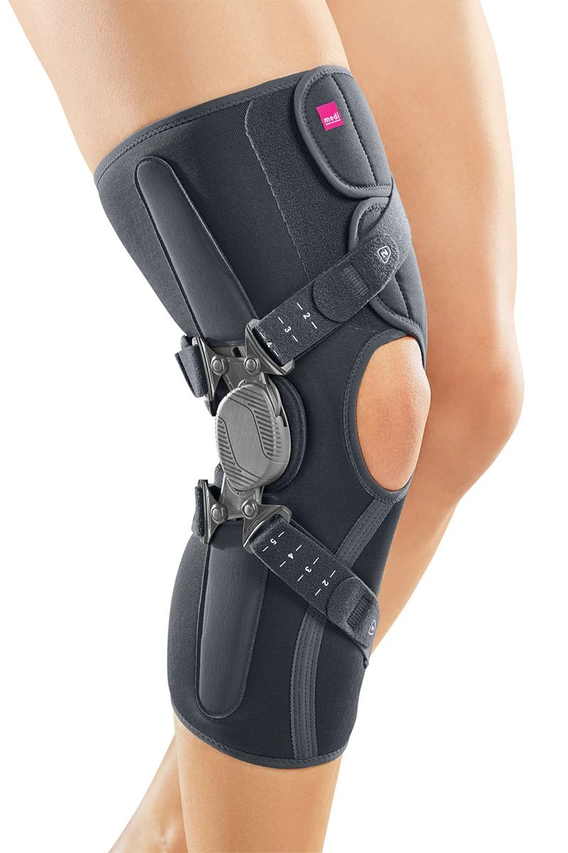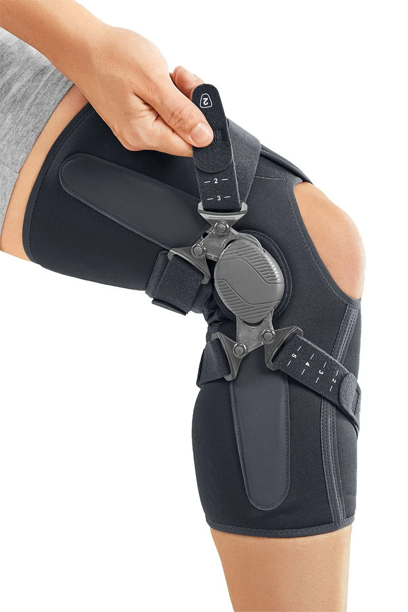 Уникальной особенностью ортеза является возможность создать дозированное воздействие для разгрузки половины коленного сустава. Регулировка разгружающего усилия осуществляется с помощью пары специальных ремней. Усилие будет одинаковым при каждом надевании благодаря цифровой шкале, нанесенной на ремни. Задние фиксирующие ремни ортеза расположены за пределами подколенной ямки, что увеличивает комфорт использования изделия. Полуразъемная манжета medi Soft OA light облегчает надевание изделия и обеспечивает практически безболезненное натягивание в остром периоде. С помощью специальных вставок можно ограничить амплитуду движения коленного сустава безболевым диапазоном вплоть до иммобилизации (в пределах от 0° до 30° с шагом 10°, а от 45° до 90° с шагом 15°). Компрессионная манжета ортеза улучшает кровообращение, что положительно влияет на состояние коленного сустава.