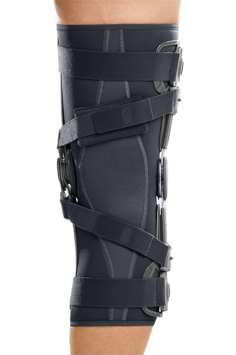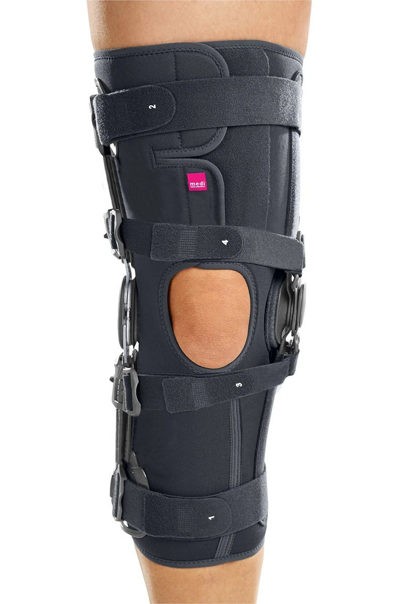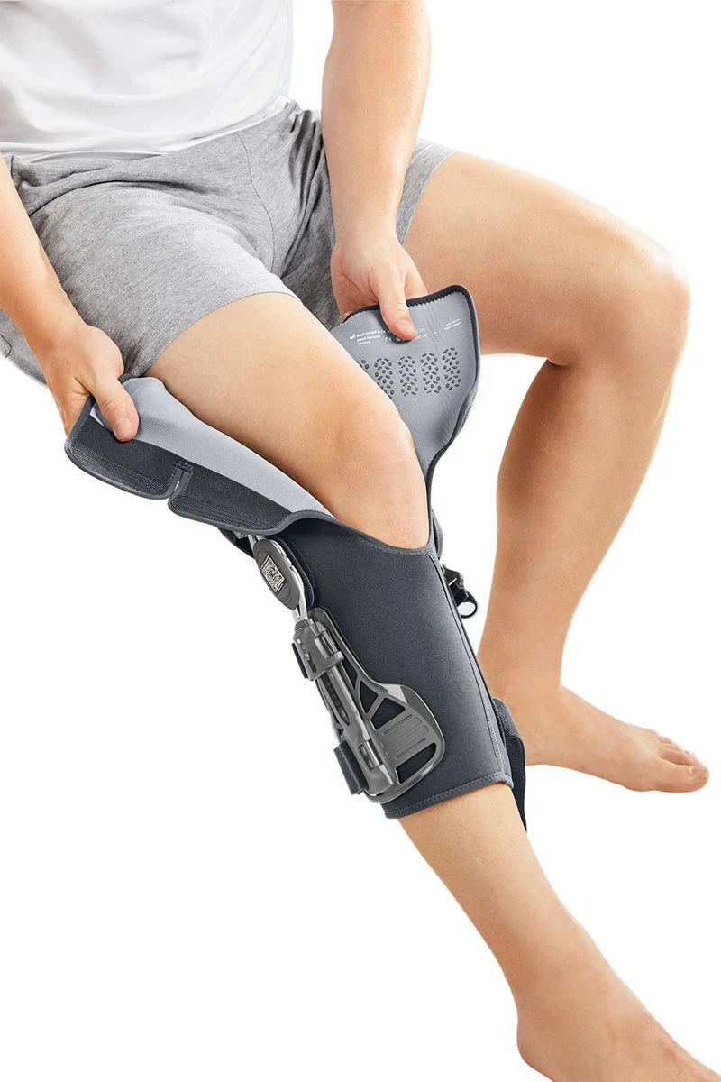 Уникальной особенностью ортеза является возможность создать дозированное воздействие для разгрузки половины коленного сустава. Регулировка осуществляется с помощью подвижных узлов, расположенных на боковых ребрах жесткости. Усилие будет одинаковым при каждом надевании благодаря цифровой шкале. Задние фиксирующие ремни ортеза расположены за пределами подколенной ямки, что увеличивает комфорт использования изделия. Полуразъемная манжета medi Soft OA облегчает надевание изделия, в том числе уменьшает вероятность возникновения боли при натягивании ортеза на ногу в остром периоде. С помощью специальных вставок можно ограничить амплитуду движения коленного сустава безболевым диапазоном вплоть до иммобилизации (в пределах от 0° до 30° с шагом 10°, а от 45° до 90° с шагом 15°). Компрессионная манжета ортеза улучшает кровообращение, что положительно влияет на состояние коленного сустава.